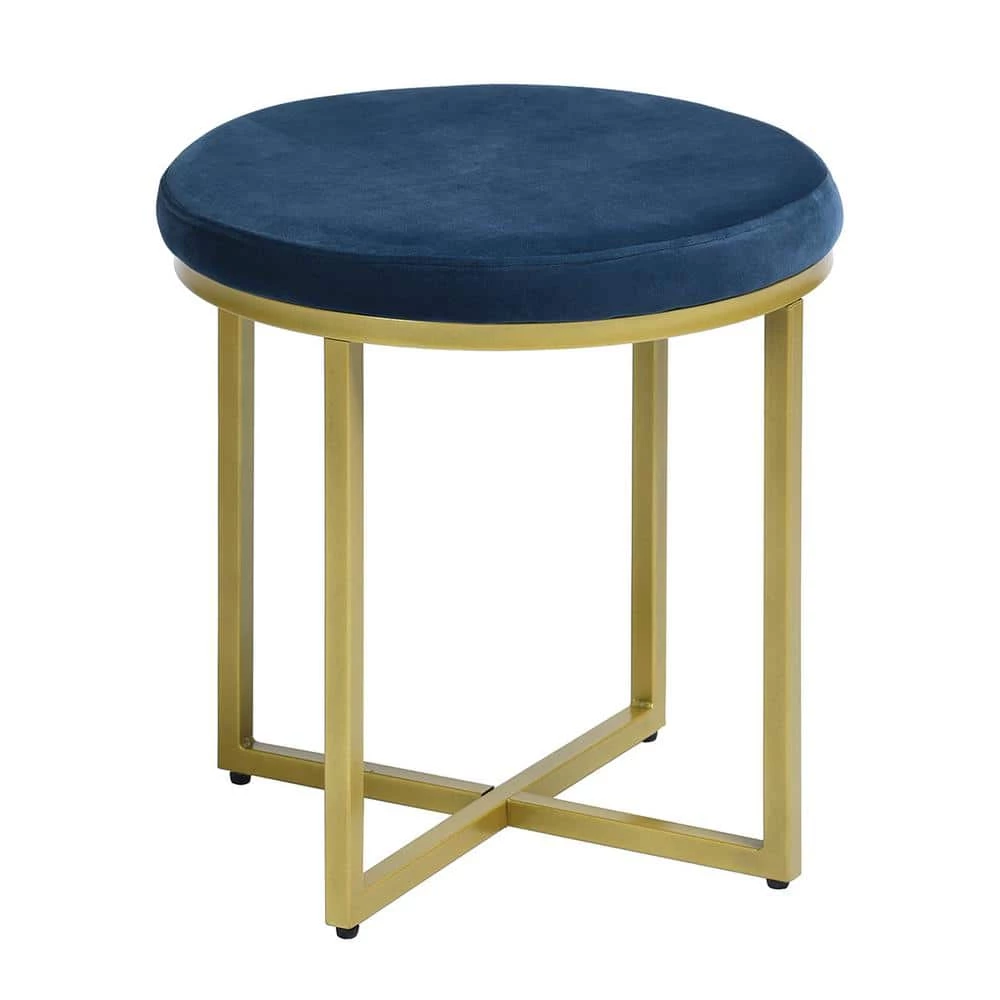 - His one’s round top is filled with foam and upholstered with velvet fabric in a solid hue for a streamlined and modern look