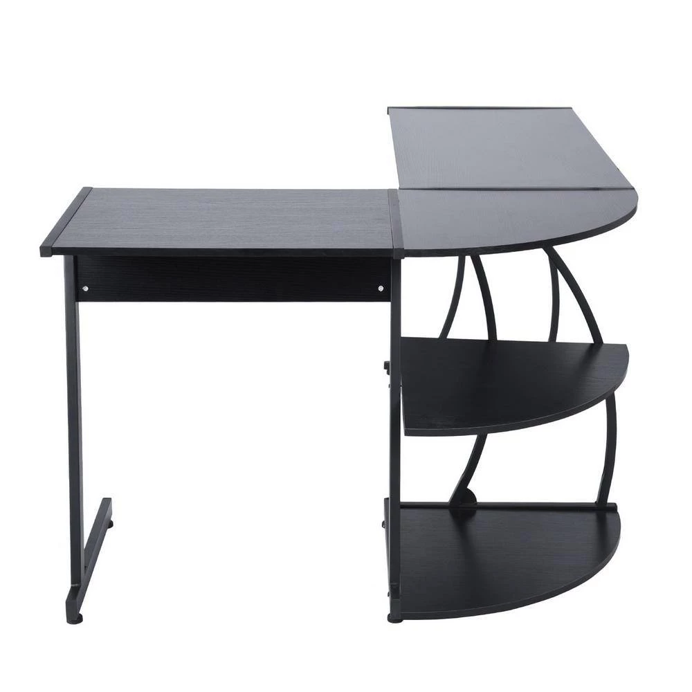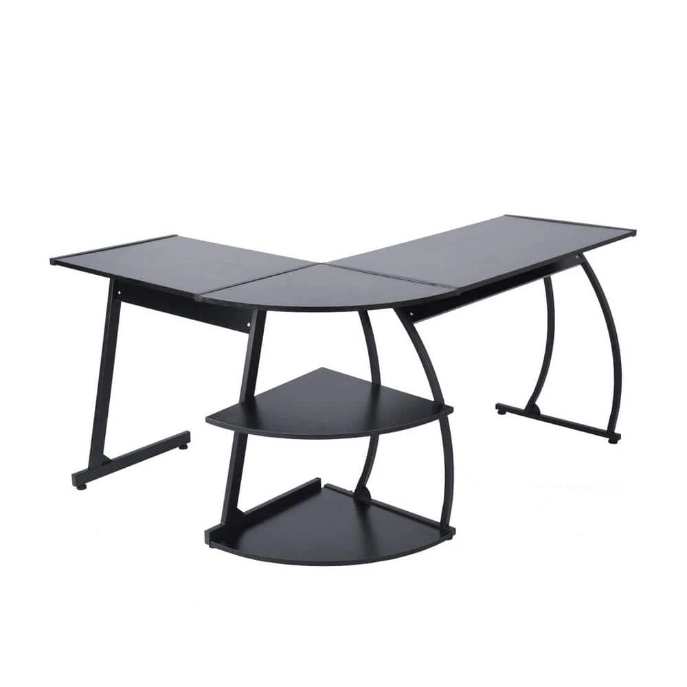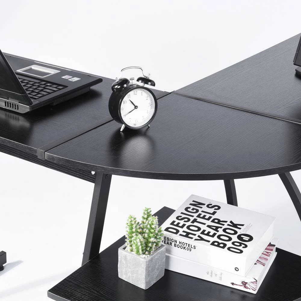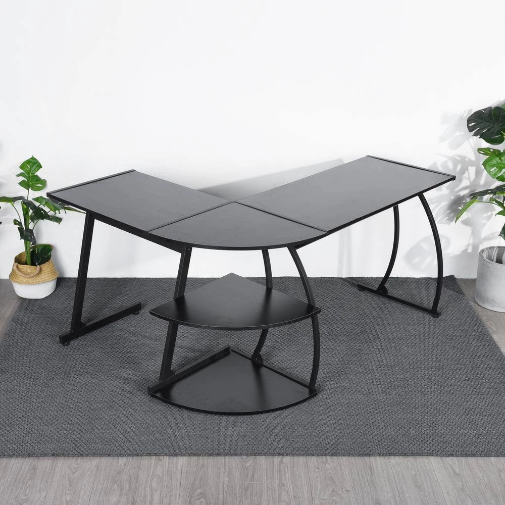 This clean-lined L-shape desk is ideal for placing in the corner of your home office or bedroom. This table will be great to storage. Whether you run your business from home or just need a spot to craft DIY masterpieces, this desk is an ideal anchor for your workspace. The spacious table surface will allow room for a centerpiece while still having room for decorations or other uses. The lower shelf helps organize your remote controllers, magazines, and books.