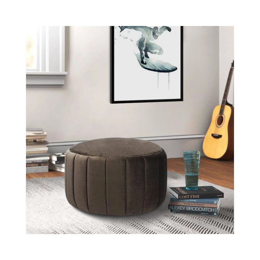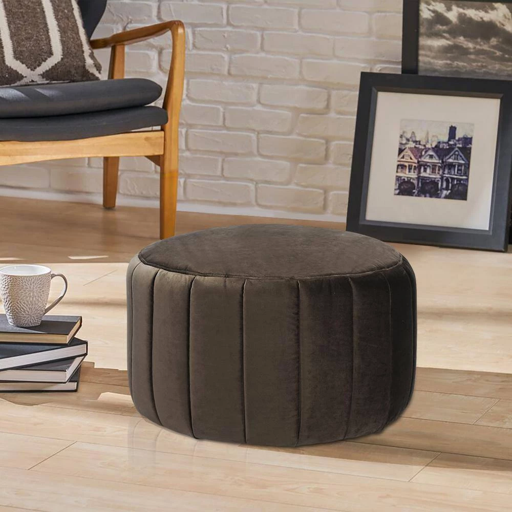 Kick up your feet or set down a tray of snacks in the living room on this handy pouf ottoman. It features a simple rounded design, and it’s upholstered in a blend of polyester and velvet for a tactile touch. It comes in a variety of colors to choose from that best suit your style. On the side, this pouf shows off-channel tufting for a classic look in your space. Plus, this pouf can easily be cleaned by bringing it to your dry cleaning professionals. This piece can accommodate up to 250 lbs.