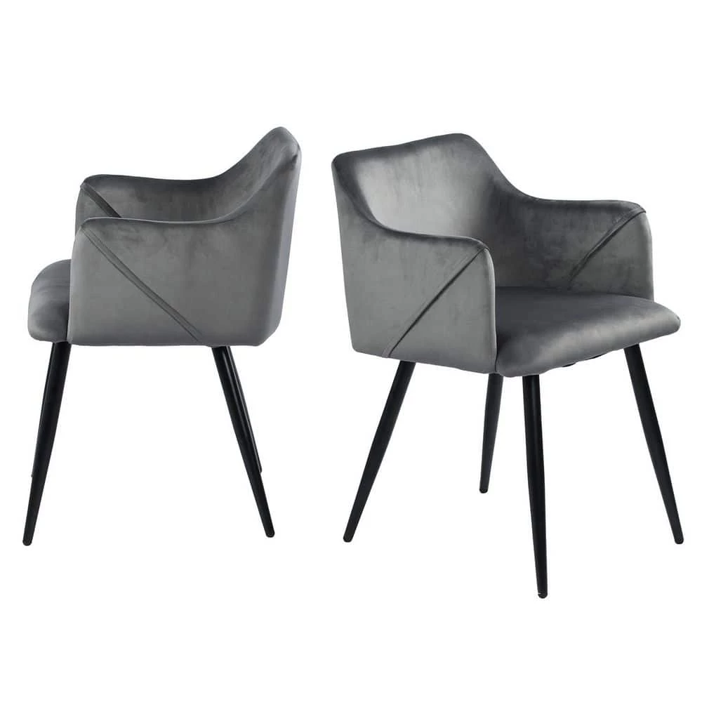 With its sleek lines and cushiony seats, this 2-piece set of dining chairs brings an inviting contemporary accent to your dining room. They’re made from steel and engineered wood, with splayed, tapered legs that add a mid-century contemporary touch. Their foam-filled fabric upholstery comes in a variety of rich colors, to let you create just the right dining area for your home. We love that these side chairs have curved, solid backs, so you can relax over dinner. Plus, their armless design makes it convenient to tuck them under the table (not included) when they’re not in use, great for smaller kitchens.