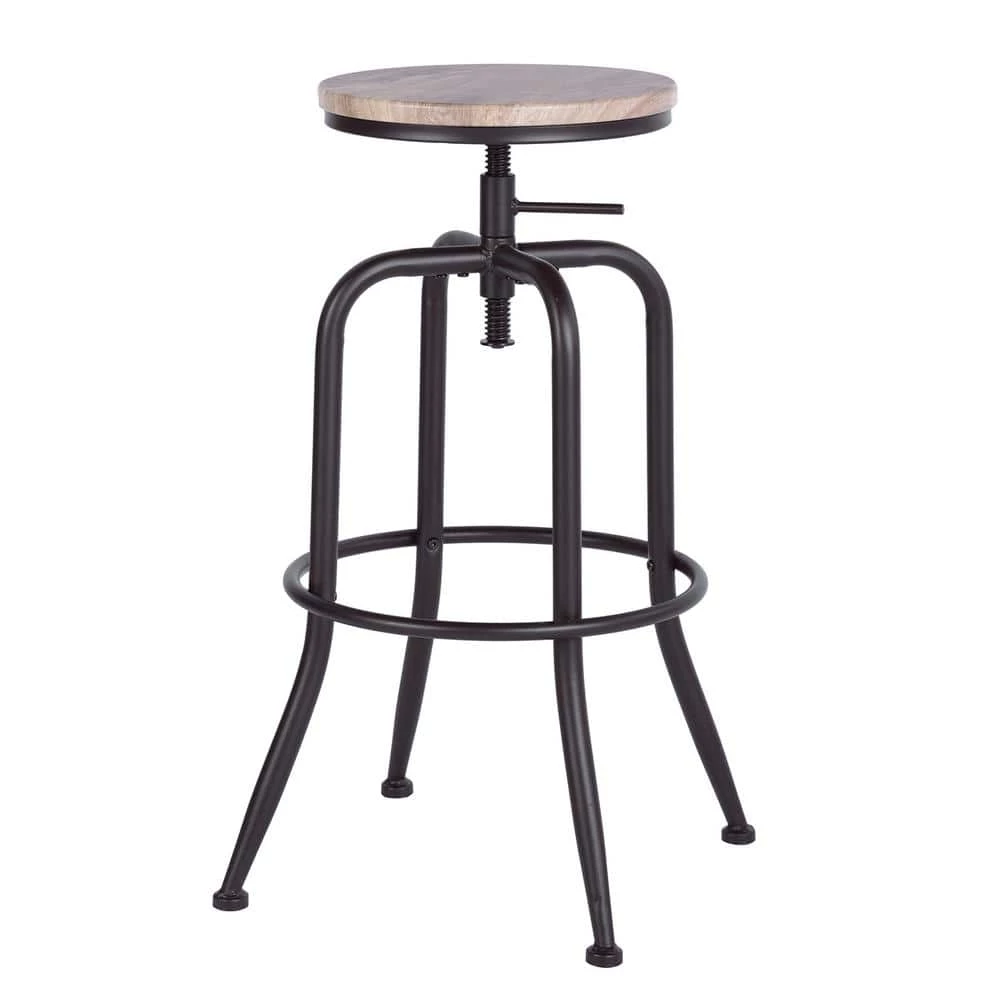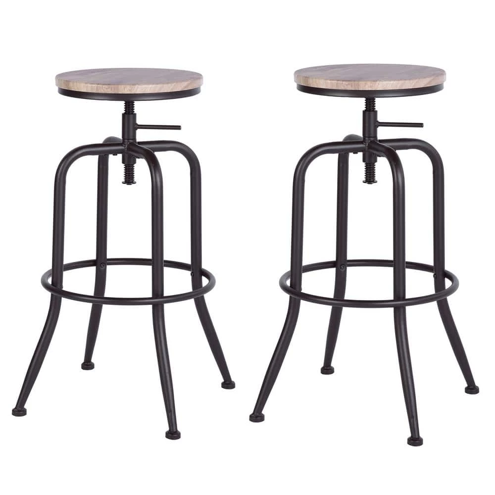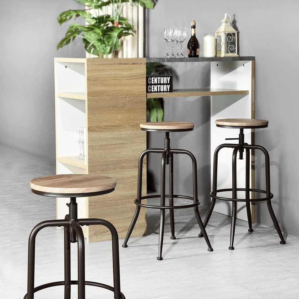 This barstool flaunts sweet juxtaposition with its simple, sturdy construction Ideal in a minimalist space. Its frame is made of engineered wood and metal. The four metal legs and rounded footrests make the base more stable and comfortable, and the seat height adjustable designed is convenient for you what height you want. It can be used in the store, the kitchen, the game room, the bar, the basement, the dorm or the attic.