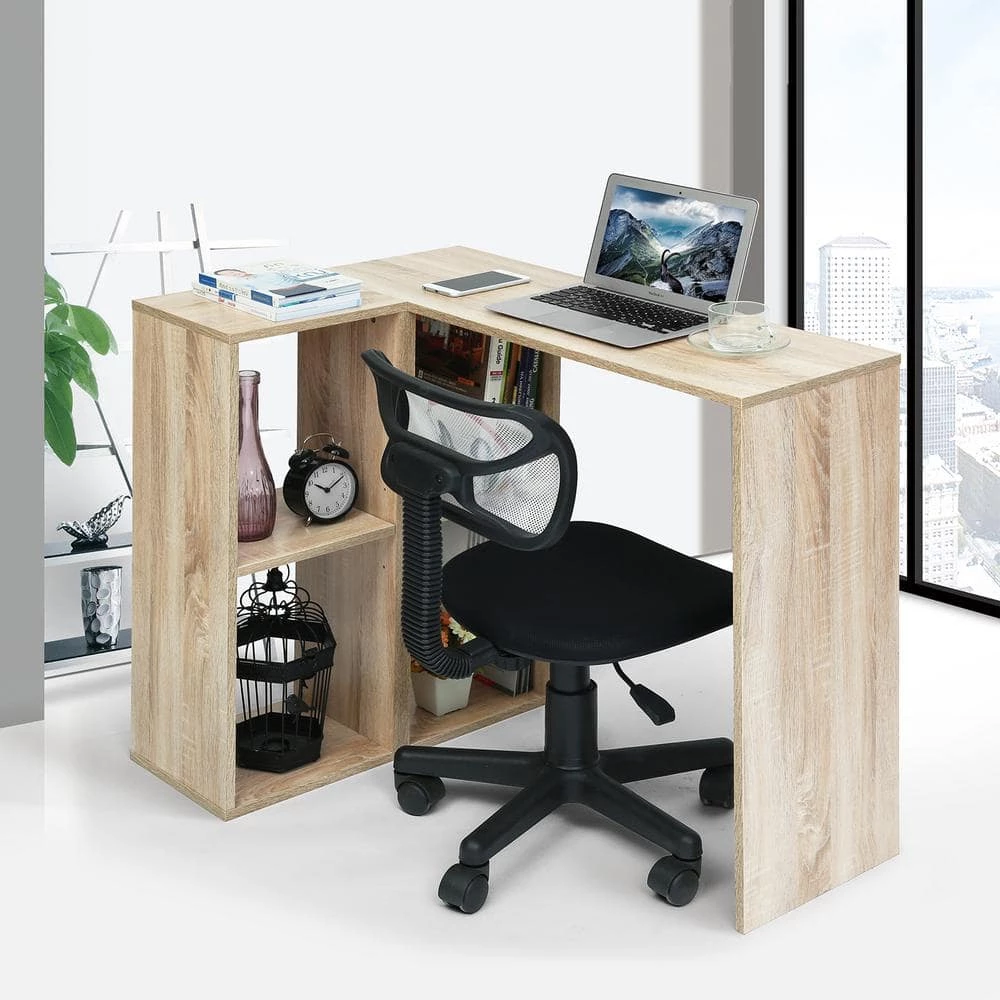This Payakumbuh Reversible L Shape Desk will be a stunning focal point in your contemporary home office. The shelf can swap the left side with the right, With clean lines, thick panel construction, this desk is the perfect combination of function, versatility, and design in a modern form. The desktop offers a spacious work surface to meet your working needs without compromising style. The side surface offers an additional workspace with open concept adjustable shelves that can be used for additional storage.