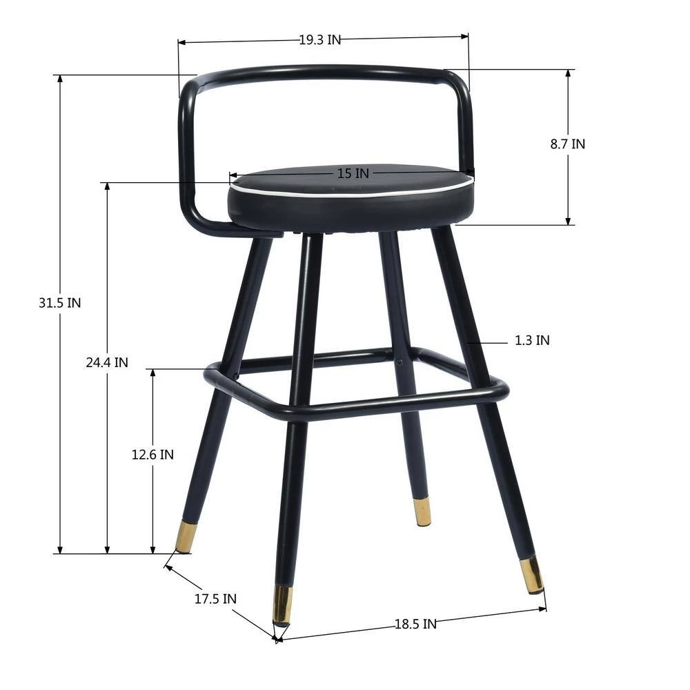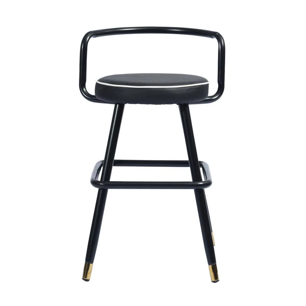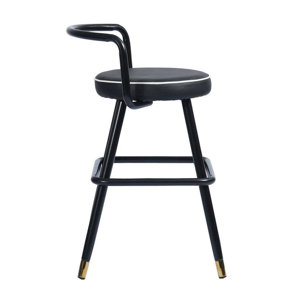 - High barstool. Black PU upholstery. Black powder coating legs.