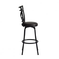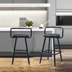 36.2 in. Lettes Black Low Metal Frame Cushioned Bar Stool with PU Seat (Set of 2) by Homy Casa