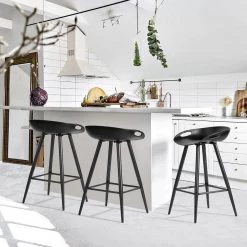 BALLON 31.5in.Black Low Back Metal Frame Cushioned Bar Stool with PU seat (Set of 2) by Homy Casa