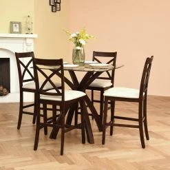 Stevie 35.8 in. Brown Square Clear Glass Top With Solid Wood Frame Counter Height Bar Table (Seats-4) by Homy Casa