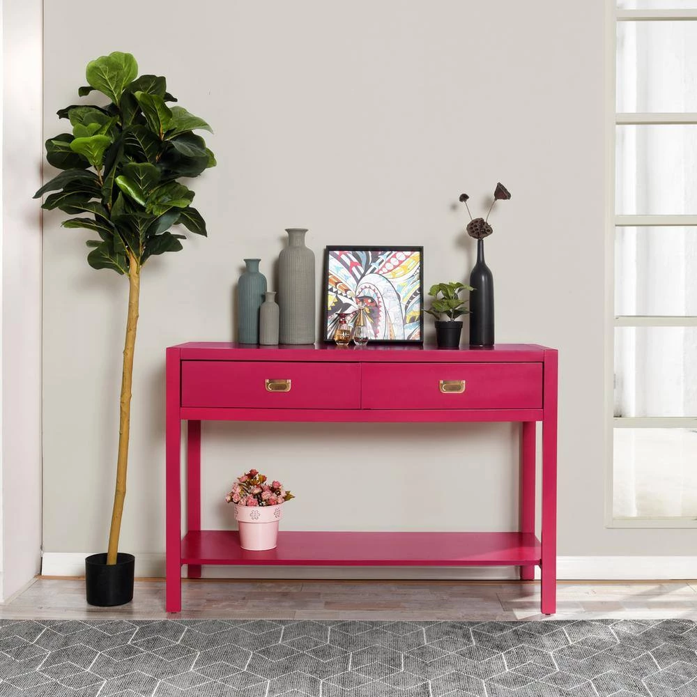 Bring a touch of class to your entryways with this console table. Crafted with strong solid wood with brown MDF finish, this console table offers a beautiful mid-century atmosphere to your room. With 2 Drawers and 1 lower open shelf included, it provides much storage space for daily needs bur also very easy to fit into a compact room. Placing it at the right spot, this table must be a fantastic scene in your house.