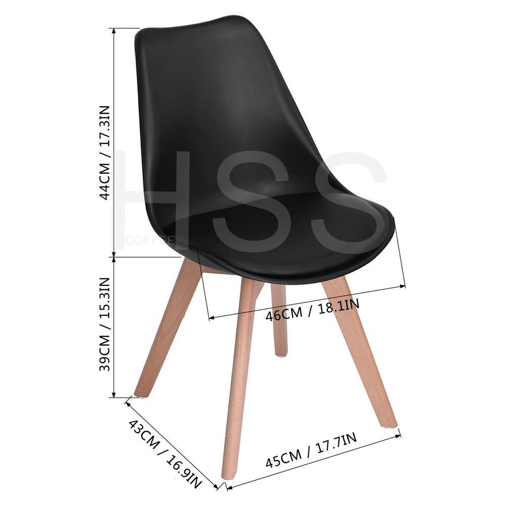 You may be bored with those chair without design. A piece of new artistic furniture or decor is needed for your dining room, conference room or guest room. Then you deserve to get those 4 Chairs. No matter your desk is square or round. They will fit well not only for a large desk but also a small table. Just choose the right color Main Features: Set of 4, Side Chairs with strong metal legs, seat bottom fixed with sturdy X-shape support, a ‘little radian’ backing for extra comfort Elegant design dining chairs set with PP back and faux leather cushion seat and back, more comfortable and elegant in the dining room, guest rooms, extra room, and vacation homes. Straight solid beech wood legs, the bottom of the chair legs has a plastic, a nice soft rubber floor protectors for sensitive flooring. Lightweight but sturdy home chairs, look great even in small apartments, Simple assembly required Specification: Color: Black / White. Material: Solid Wood plus PP back plus PU leather seat cushion. Overall Dimensions: 16.9 in. L x 17.7 in. W x 32.6 in. H. Weight capacity: 230 lbs.