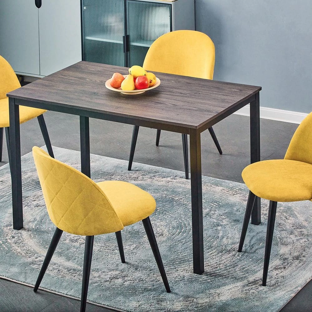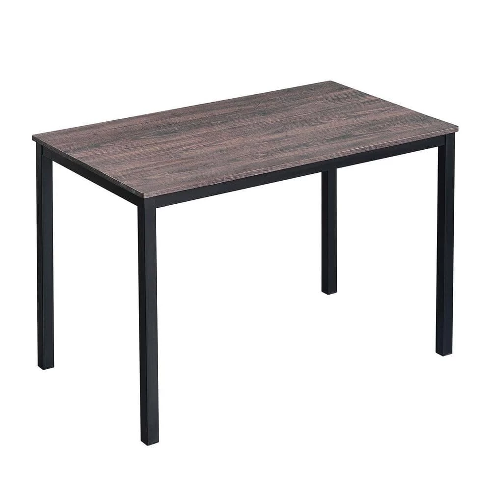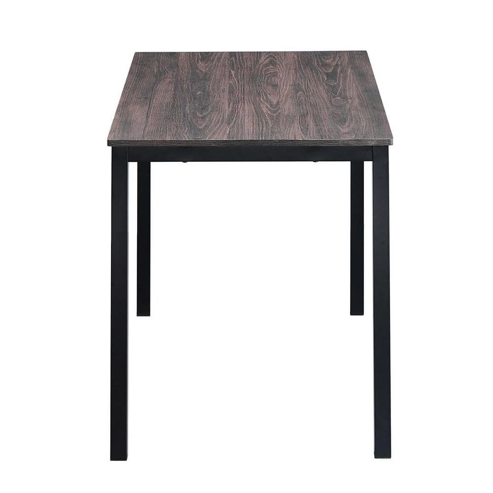 This clean, modern dining table brings sleek style to your kitchen or dining room. It’s made of metal in a black finish with a wanlnut manuefactured wood top, offering a distinctive contrast. This table features a rectangular shape with straight legs; the 47 in. W and 30 in. D top seats 4 comfortably, offering plenty of room for eating and entertaining and even work or study. It completes the look in any mid-century modern, bohemian or glam setting.