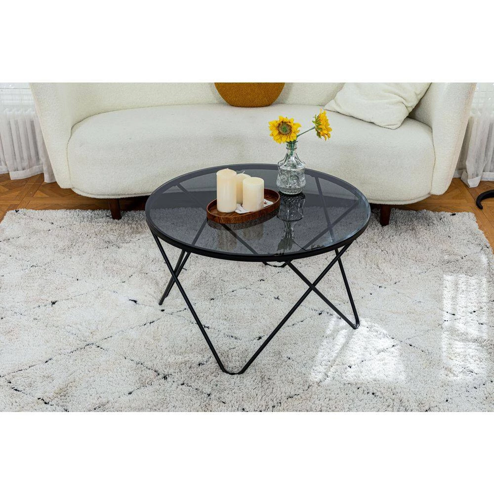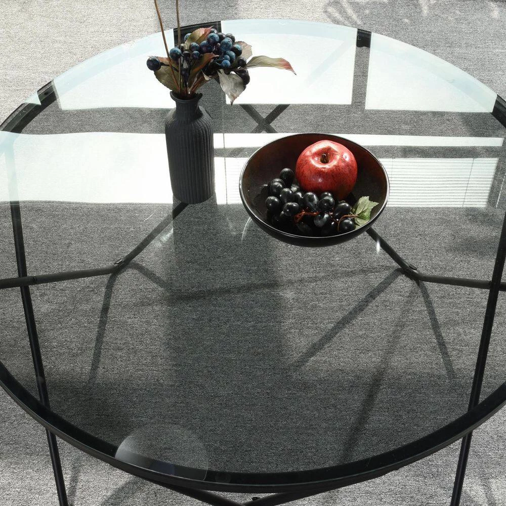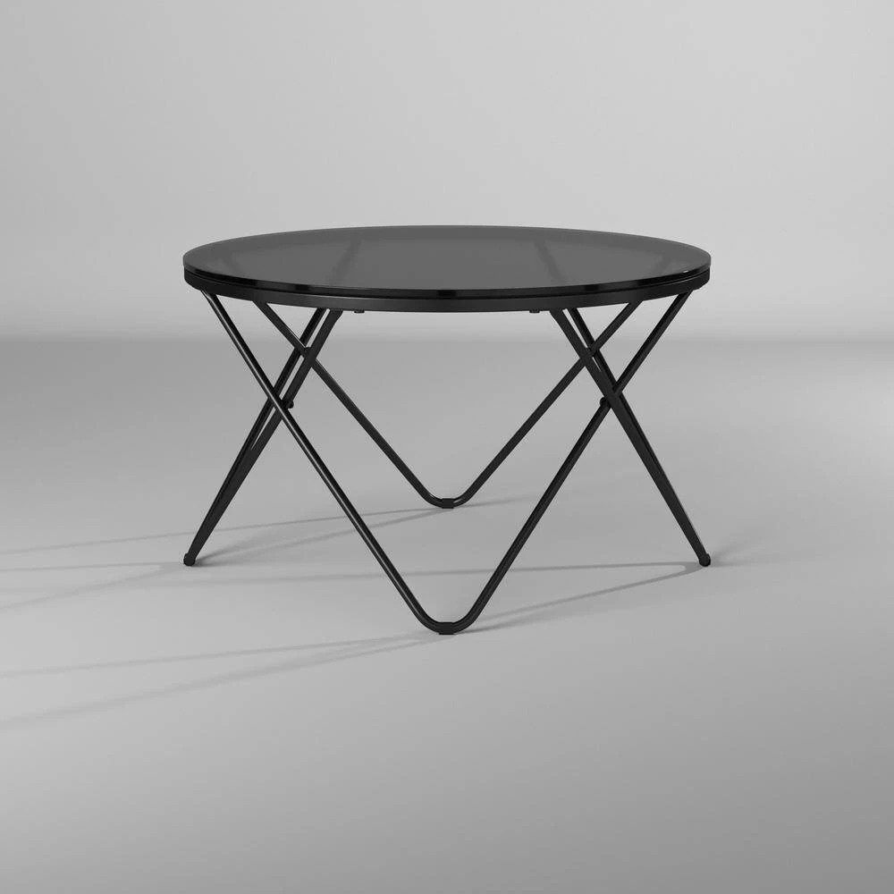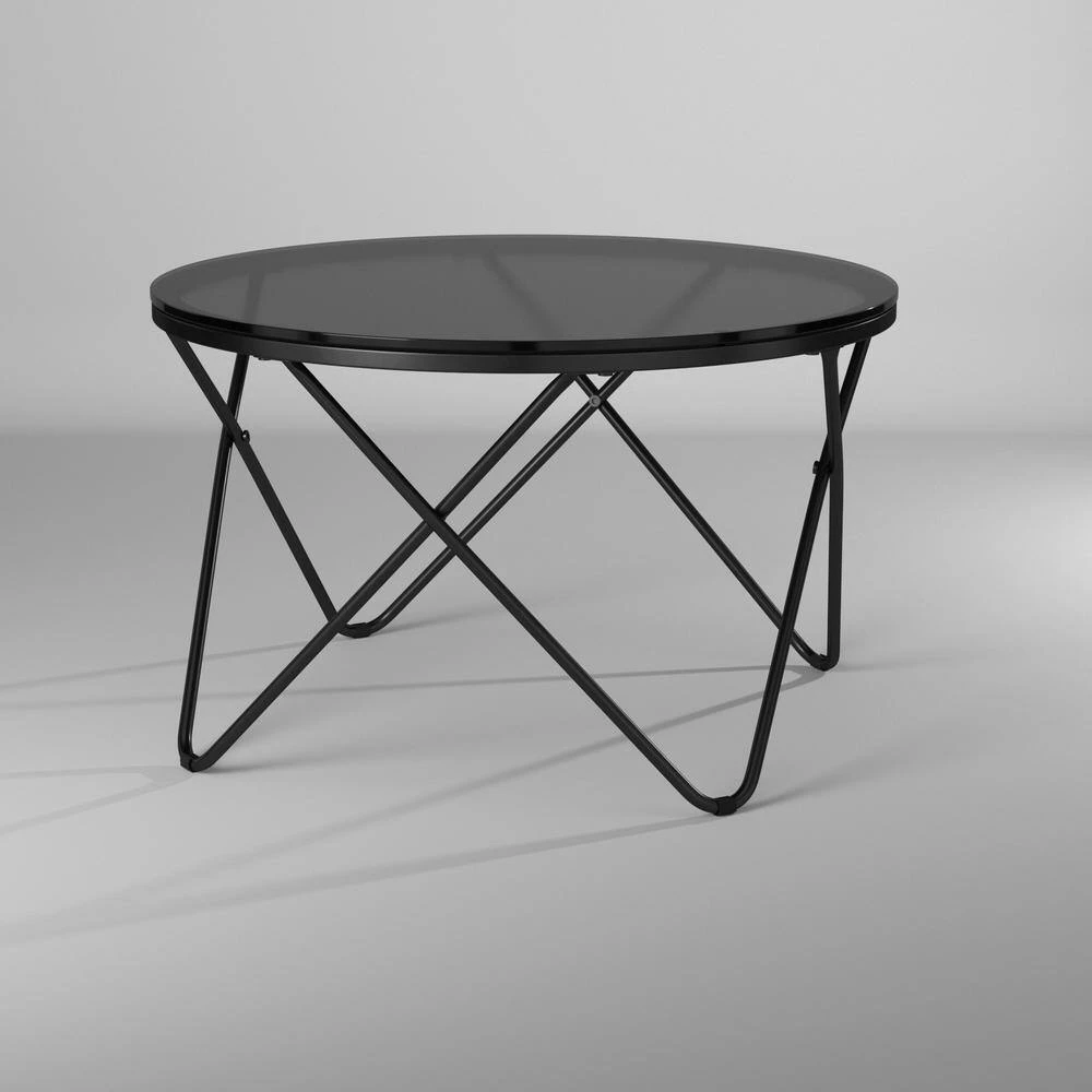 Create a modern look in your living room or sitting area with this sleek coffee table. Its frame is made from steel, and it has a black finish that works well with any color palette. The table strikes a rounded silhouette, and the tabletop features a tempered glass surface that provides the ideal spot for a drink, a stack of magazines, or a bowl of snacks. Plus, we love that the hairpin legs on this coffee table gives your space a fresh, contemporary touch.