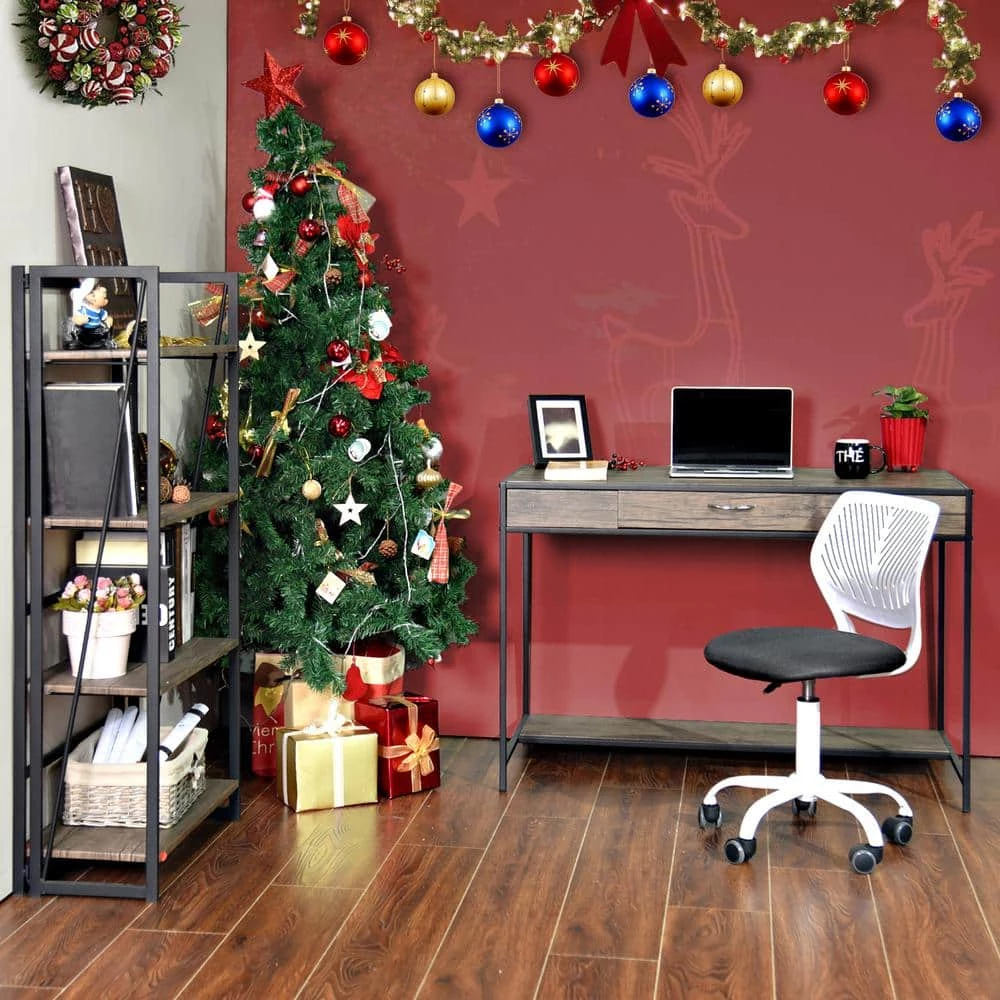 Set up a space for efficacious study with this crisp and compact desk. This writing desk has sleek and has one drawer on smoothly rolling metal glides for storing writing materials and other office supplies and keeping the tabletop clutter-free. A shelf under the desktop provides additional storage space. The light-brown and black colors complement and rustic style of any decor. Features: Smoothly MDF desktop Metal frame with power-coating Washed brown finish 1 drawer Smooth-rolling metal glides Wipes clean easily Assembly required Dimensions: Overall: 29.3inch high x 43.3inch wide x 21.6inch deep Drawer size: 20.8inch wide x 11.8inch deep x 4.7inch high