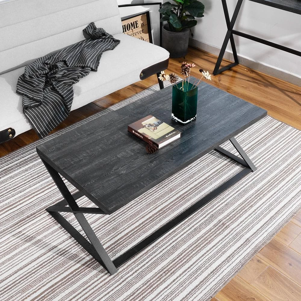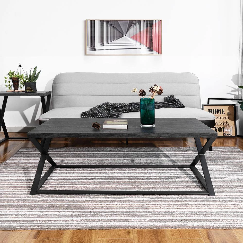 With a minimalist style, this coffee table features X-shaped cross legs with clean lines for a touch of contemporary appeal, while the dark color allows it to match various styles of decoration. This coffee table is also very practical, it can put various decorations and objects such as magazines, books, and vases. It will be your good choice. Easy to assemble.