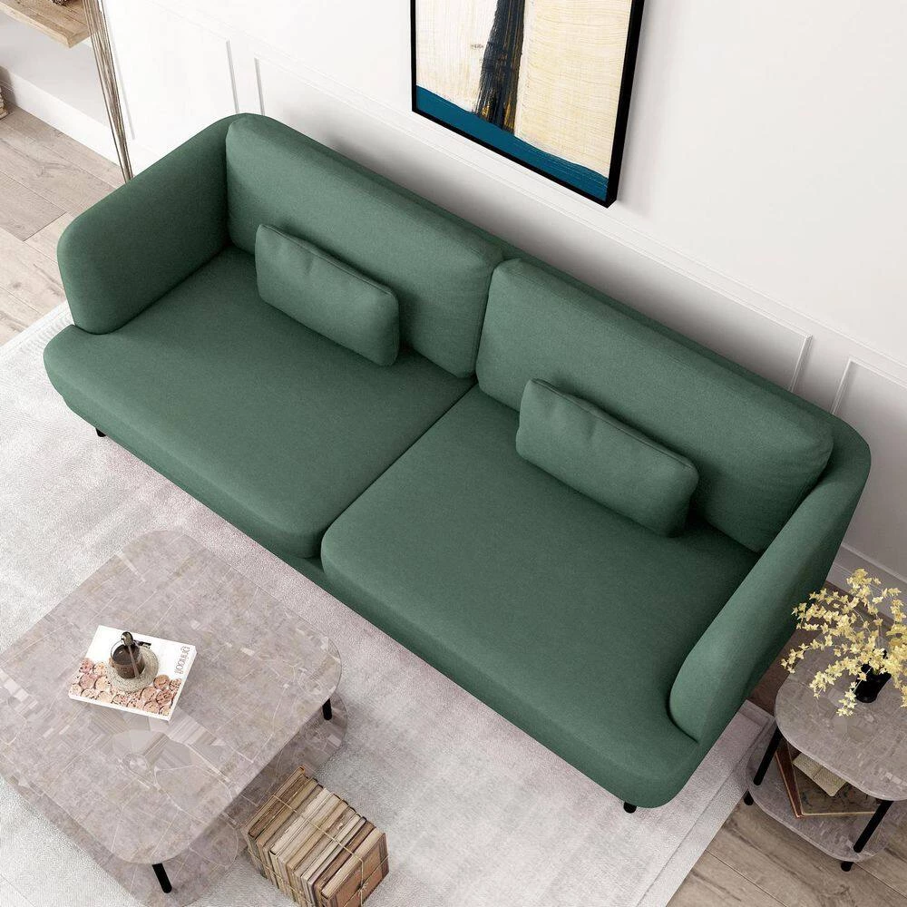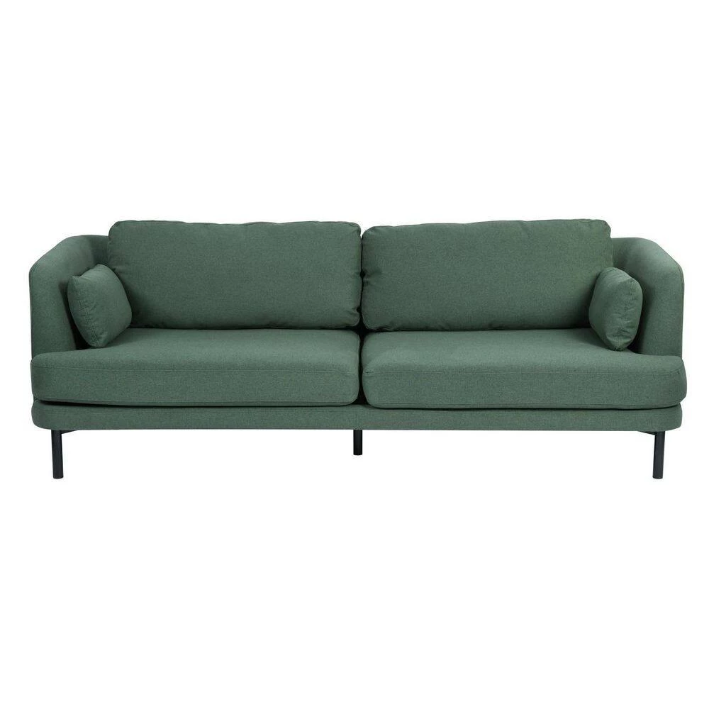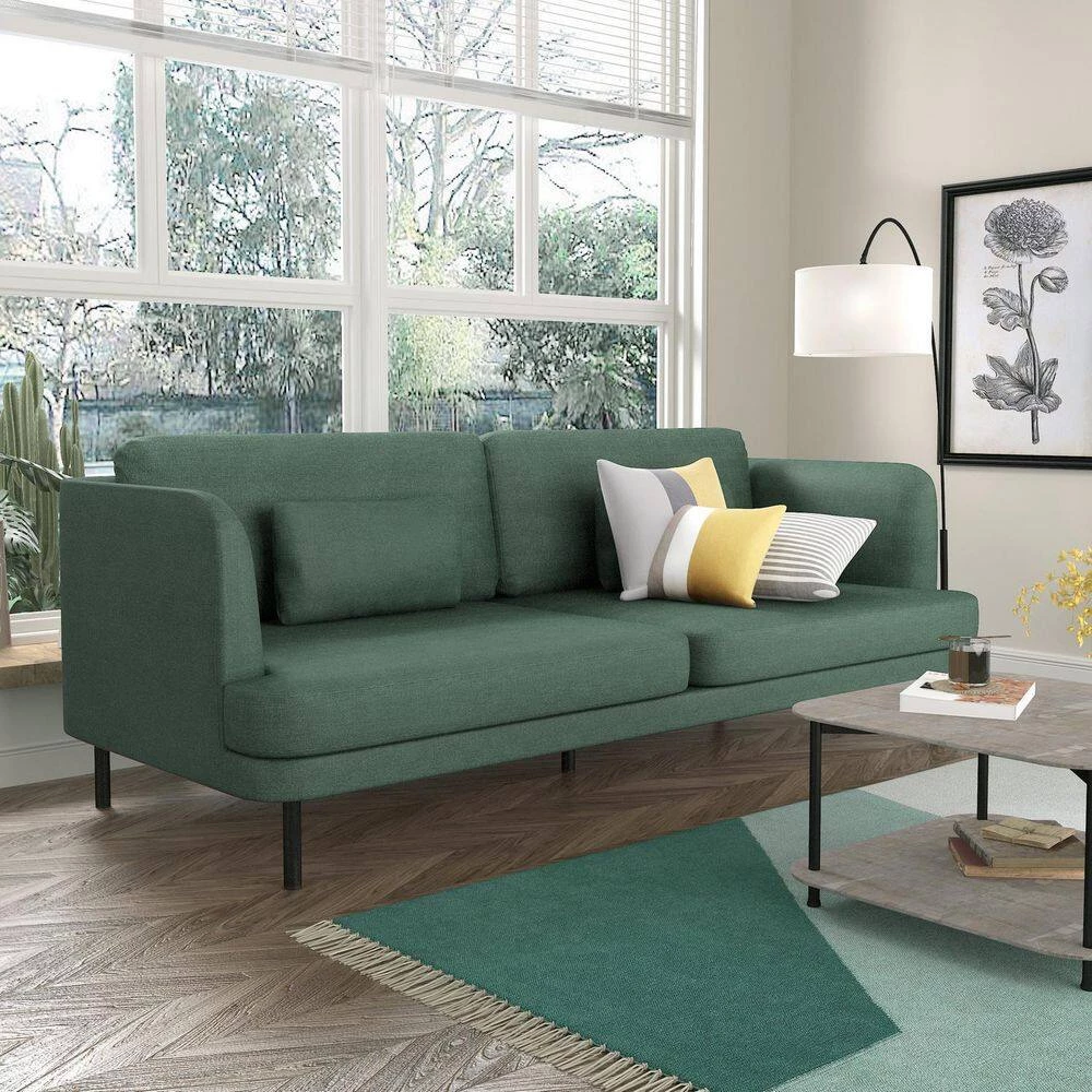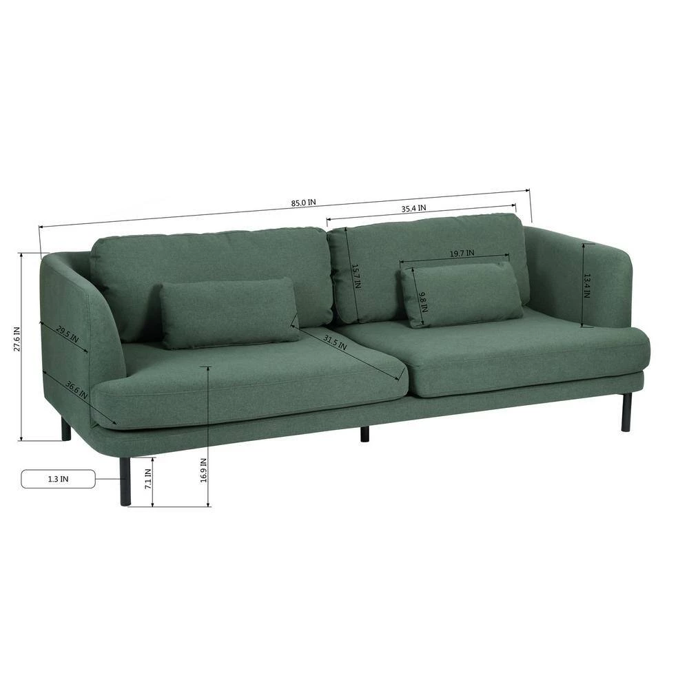 Clean modern lines and understated design make this square-arm sofa a sure win. Built on a manufactured wood frame, this sofa has square arms that are complemented by straight round metal legs. Upholstered in a durable premium fabric, this sofa is foam-filled for just the right amount of giving. The seat cushions and two pillows are removable, making cleaning and remote-finding super easy.