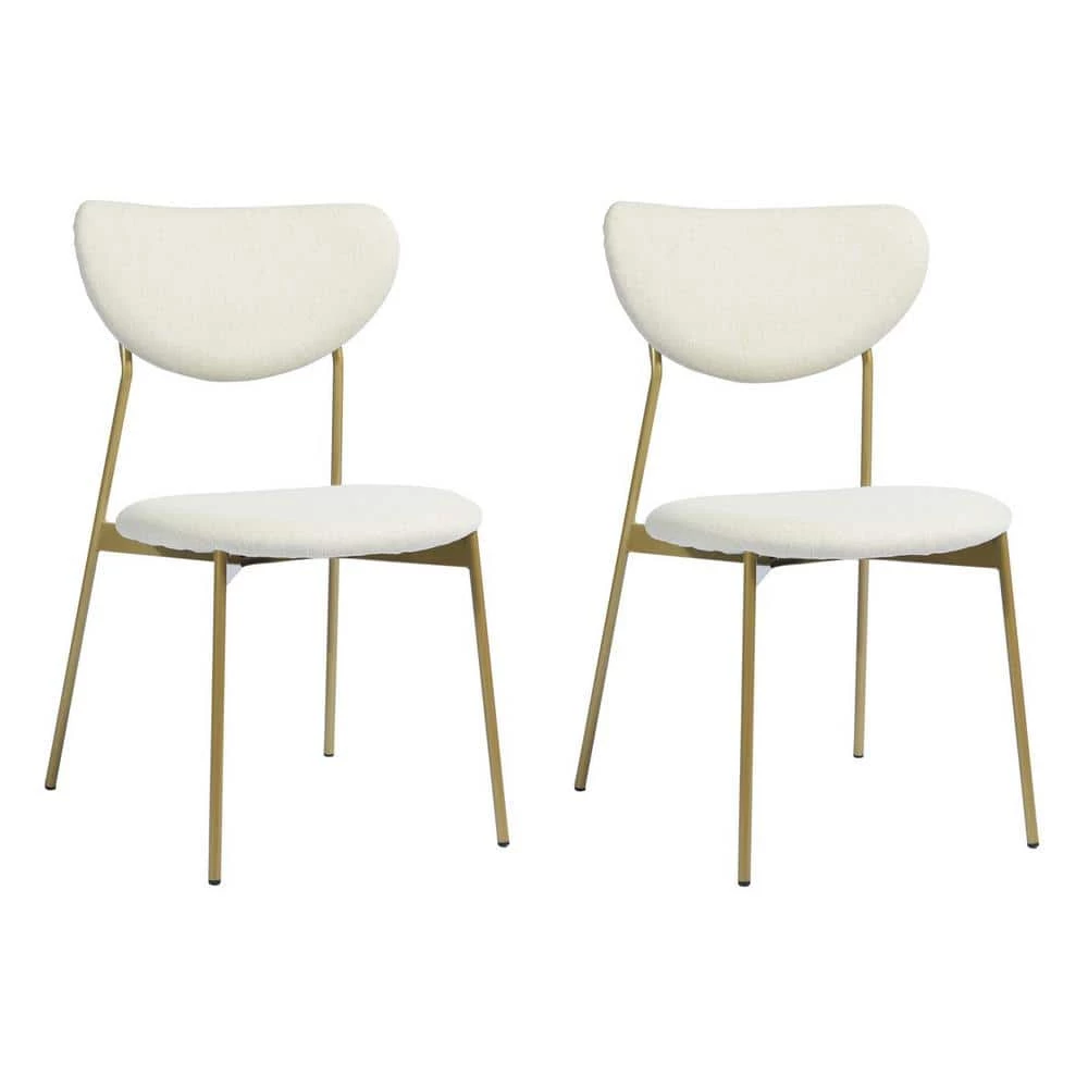 With whimsical minimalism, the side chair set of 2 is a smoothly elegant update for your dining room decor. Sturdily constructed with fabric Upholstered seat and back, it provides a stylish seat and back for dining and conversation. The dining chair’s powder-coated metal gold legs come with non-marking foot caps to protect flooring. It is a versatile dining side chair that will enhance your dining room decor or any other area as an accent chair.