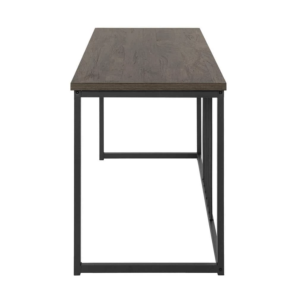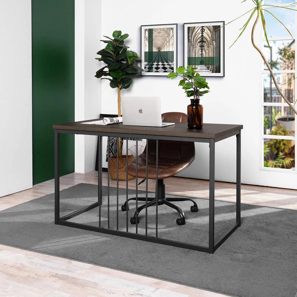 This computer desk provides a sturdy and attractive look that will fit the various styles of home and office decor. The desktop features an MDF core and is PVC wrapped, providing a durable and stylish surface for work. The frame legs in a powder-coated matte black finish offer stability and sophisticated contrast. The open desktop provides ample space to store and organize your favorite books, journals, and other important documents, as well as decorative items to enliven your room.