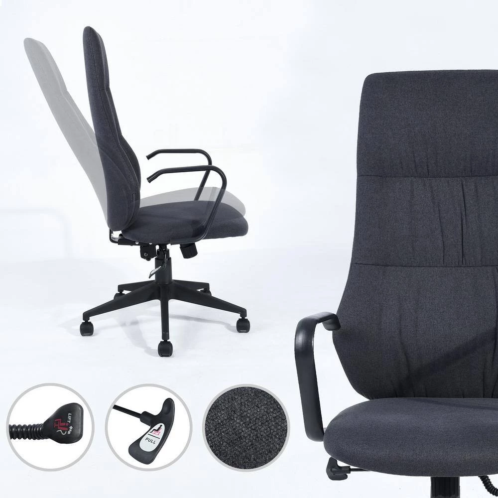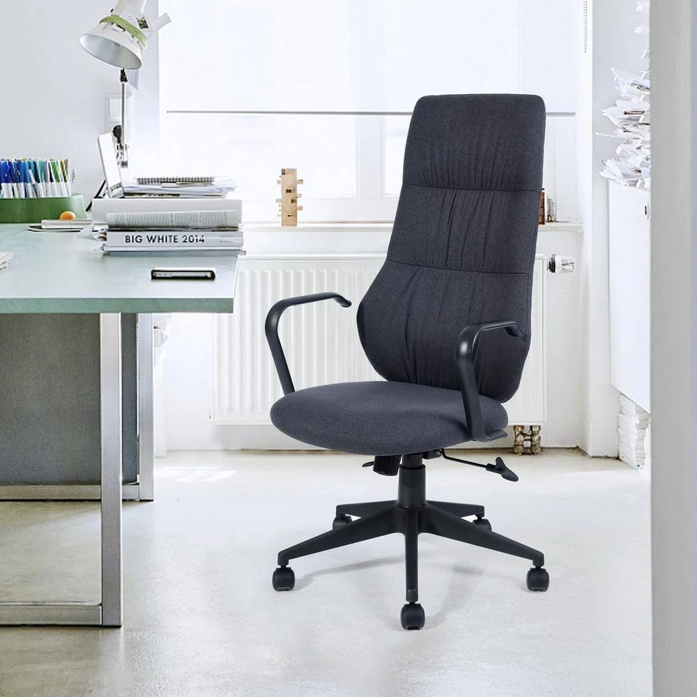 When it comes to setting up your home office, don’t forget to give yourself a seat in the lap of comfort. Adding a chair like this is a great option for rounding out your space with an on-trend touch that provides handy support while you work on your latest report. Crafted from a black-finished frame, this piece sports a manufactured wood back and grey upholstery for a seat worth sinking into. Five casters enable you to roll around your office and the adjustable swivel seat lets you set this piece to a comfortable height at your desk.
