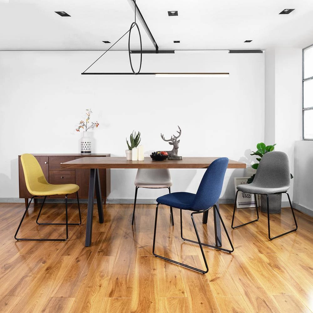 Create comfortable seating in the dining area or living area of your home with this chair. The thickly padded seat and back of this chair provide superior cushioning for leisurely hours of thoughtful conversation, while the powder-coated black finished metal legs provide stylish support to it. Pull this chair up to the writing desk for a touch of modern appeal, or use it to offer guests extra seating during your next party.
