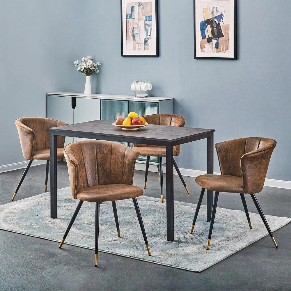 - Brown rustic fabric with black gold legs complete the mid-century mordern looking