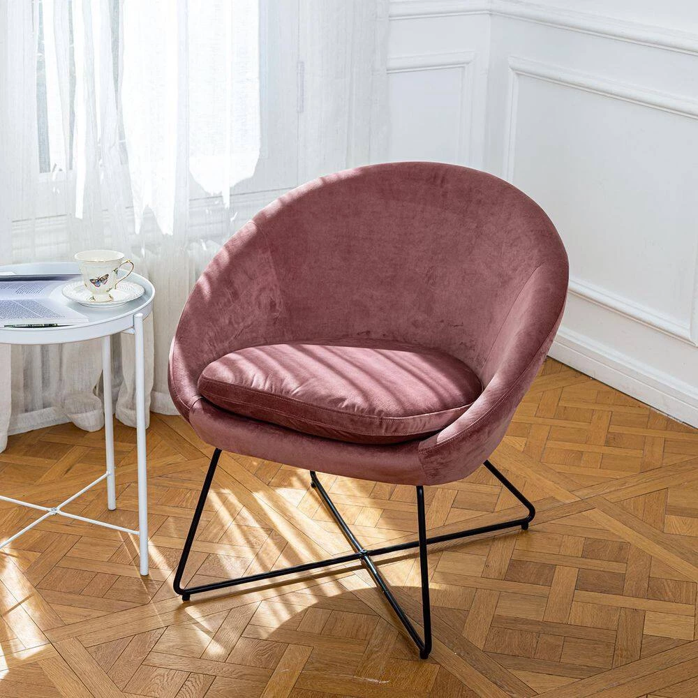 Add a touch of glamour to a home with this stylish, curvaceous chair. Upholstered in magnificent brushed velvet and combined with metal legs, this chair will look simply stunning in any traditional, contemporary environment. This velvet chair is a wonderful addition to any room in your home. Featuring soft-to-touch velvet with metal legs, this chair is exceedingly comfortable. Place this chair in your living room as extra seating, in the entryway for a quick seat to put your shoes on before leaving, or in any room in your home. You are sure to love this chair for years to come.