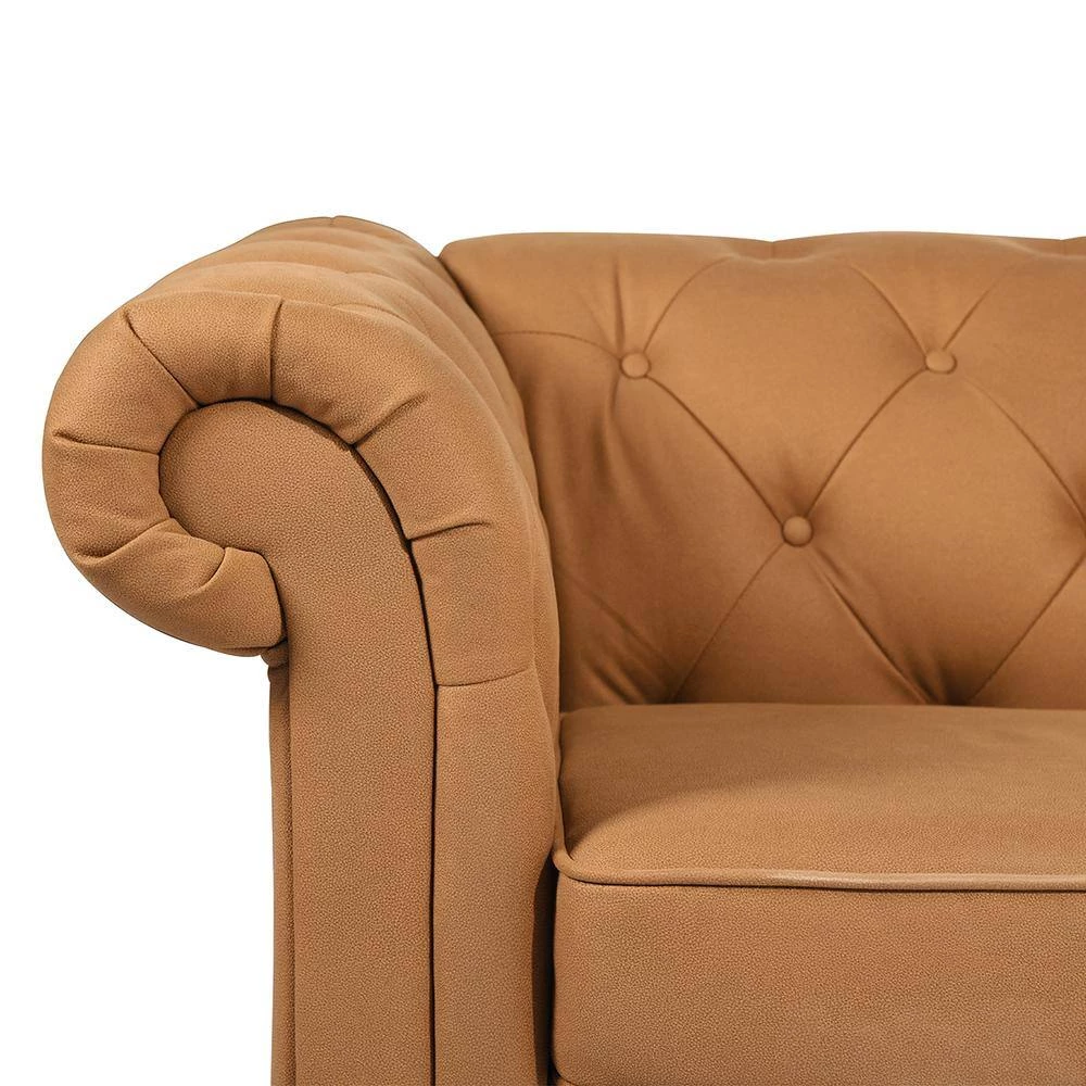 - Classic style including a tufted back, classic rolled arms, with black walnut-finished wood legs