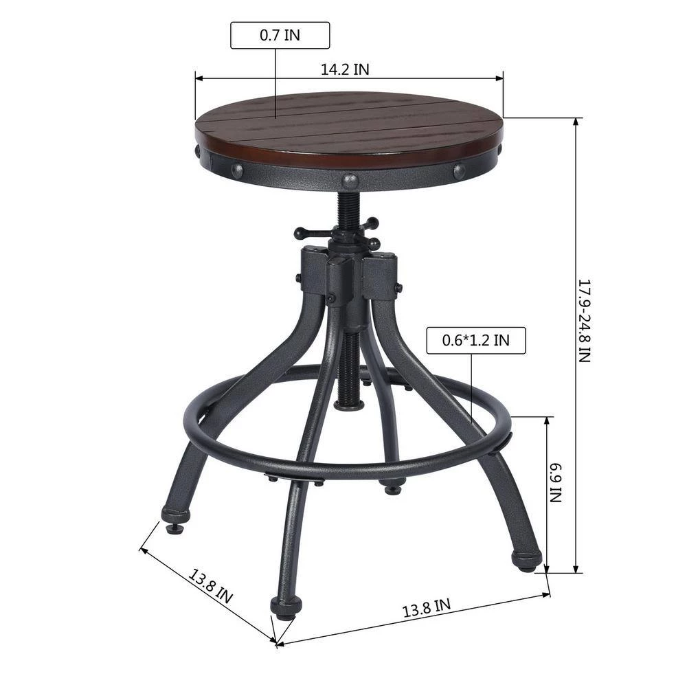 - Bar stool size: 17.9 in. – 24.8 in. H x 14.2 in. W x 14.2 in. D