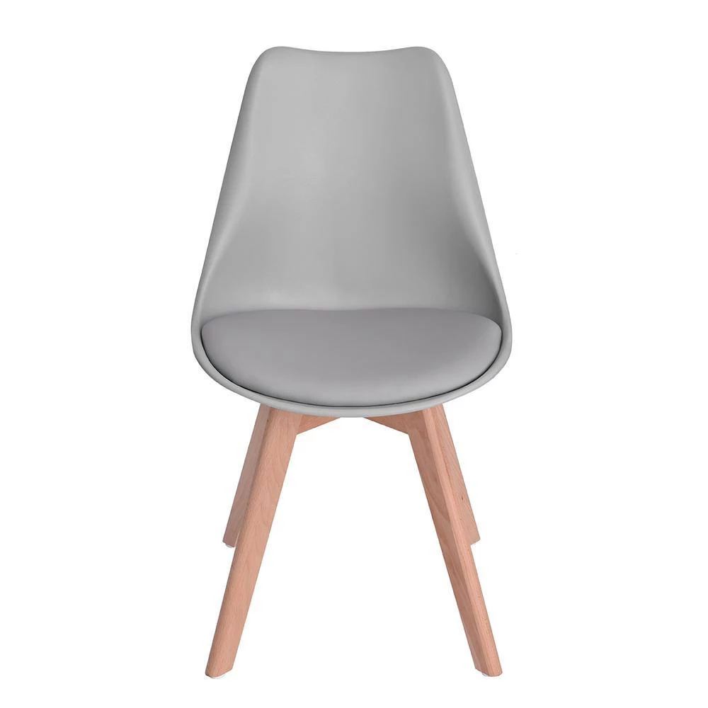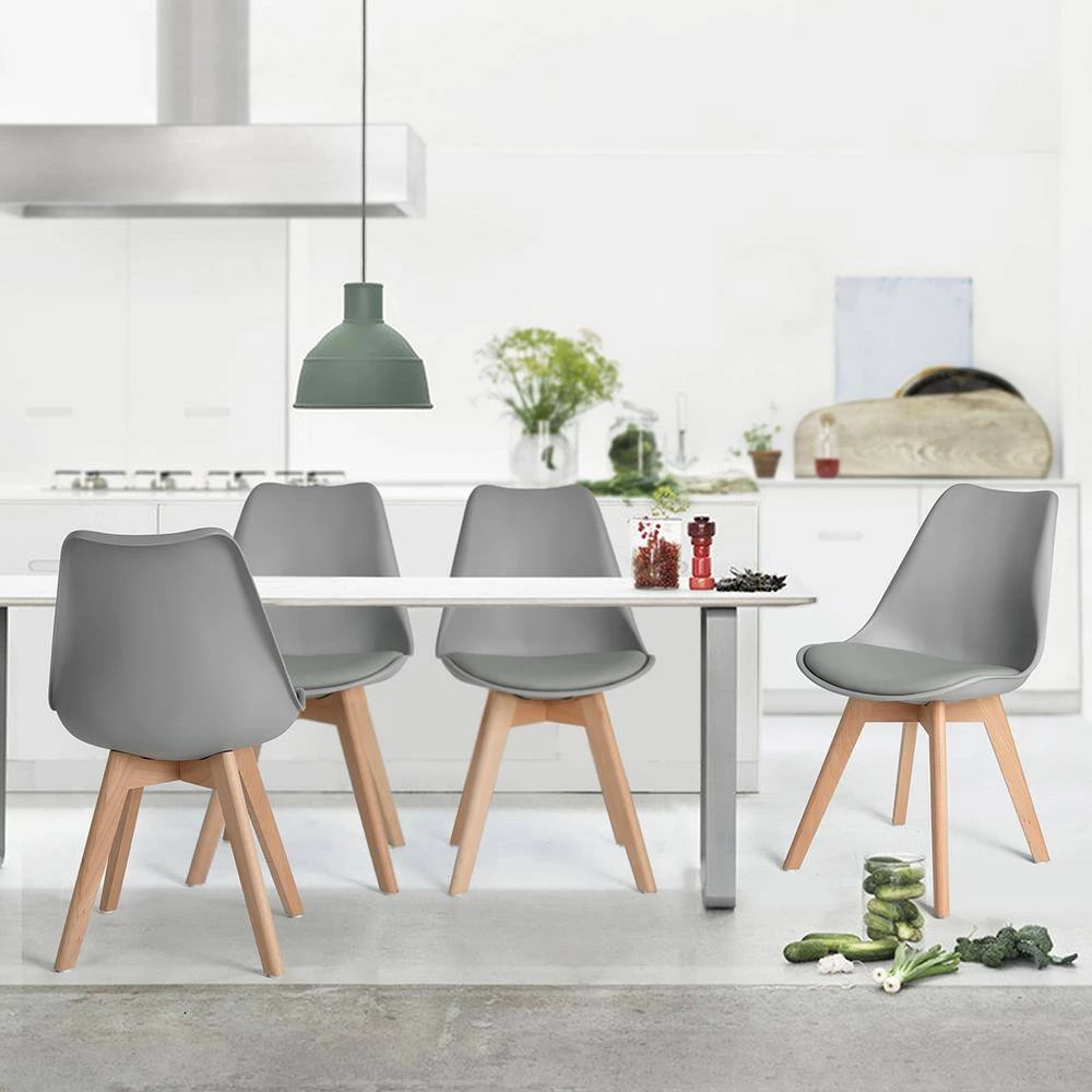 Bring streamlined, modern style to your dining ensemble with this four-piece dining chair set! Crafted of heavy-duty plastic, each chair features an ergonomic backrest with molded sides and a contoured seat, while four flared beechwood dowel legs sport a light, natural stain. Enveloped in polyester-blend upholstery, a foam-filled seat cushion offers added comfort and support. The flared table legs have a better load-bearing capacity, please rest assured to sit down.