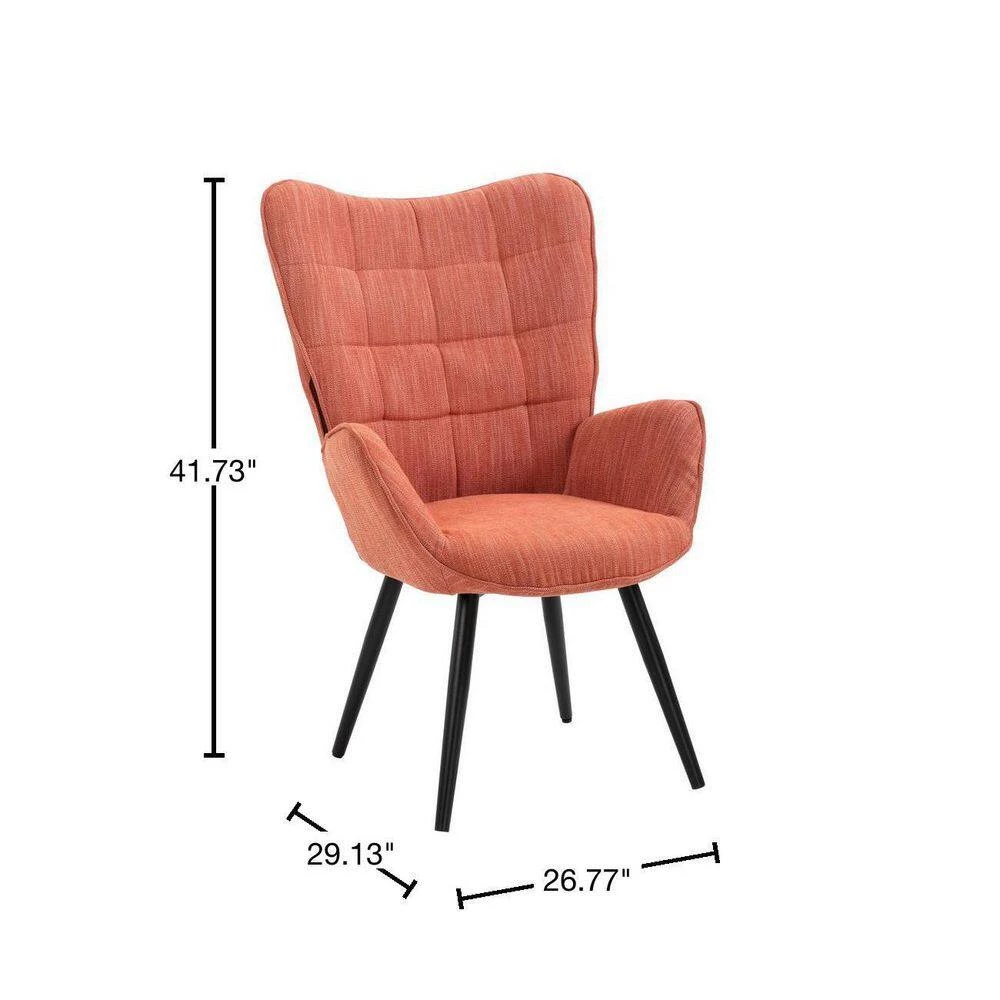 Perfect for rounding out your home with a handy perch, an accent chair like this is a great option curling up with a good book or settling in for a TV binge, while also lending your space an on-trend look. This piece features foam-filled fabric upholstery for a chic touch in any space with classic design with a twist. Its frame is crafted from wood and features tapered legs for a touch of that retro appeal, while flared arms and button-tufted details add a hint of classic charm. The “wings” complete the look.