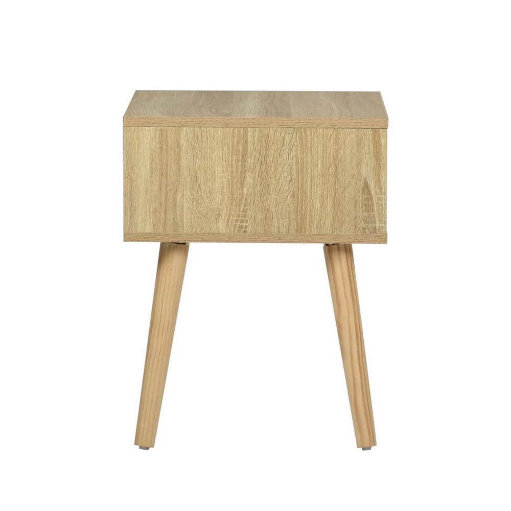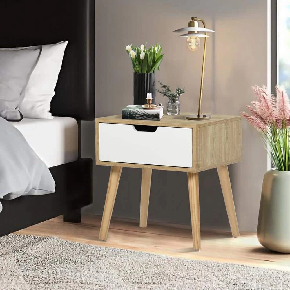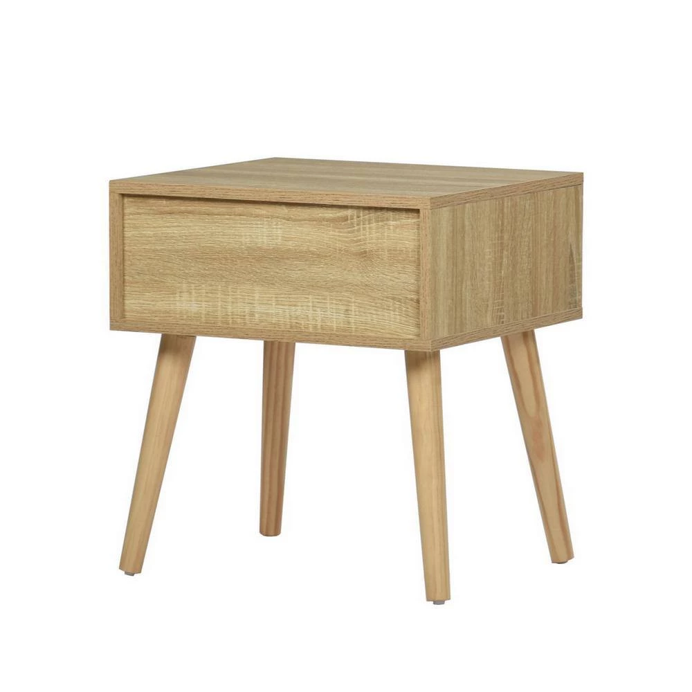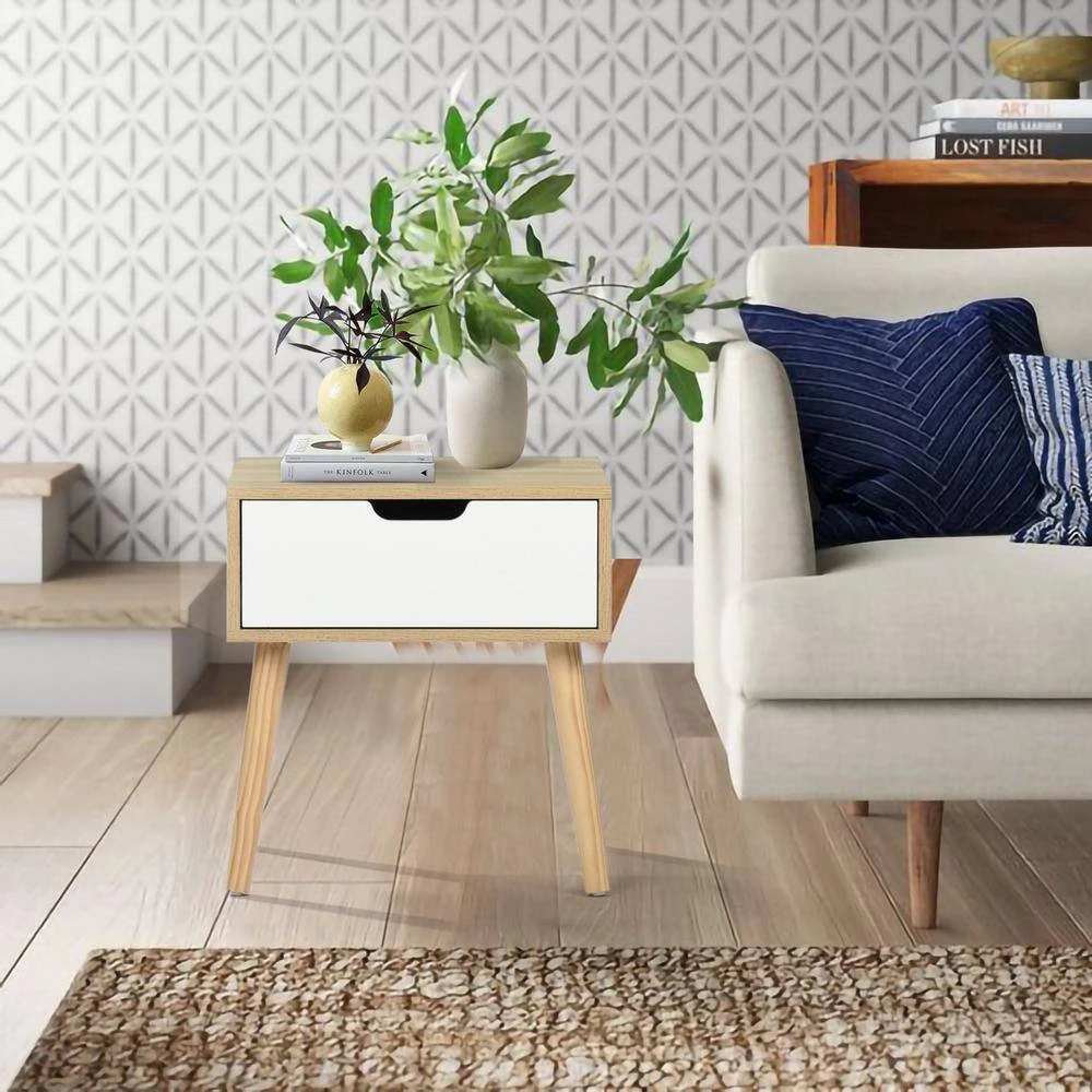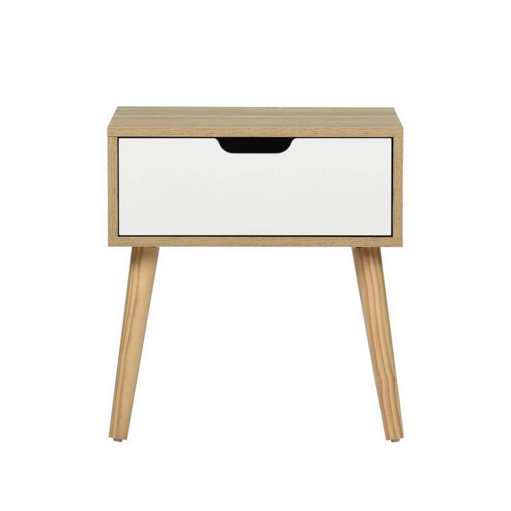 This is one of those trendy tables that you could use just about anywhere in your home. It would make the perfect nightstand beside your bed. Or, you could use one on each end of your couch in the living room or family room. You could even use it as a coffee or tea table in front of your sofa. It has a rectangular MDF top and solid legs that are painted to look just like wood. And to make it just as handy as it is modern and good-looking, it also has a roomy drawer for stashing things like remotes, books, etc.