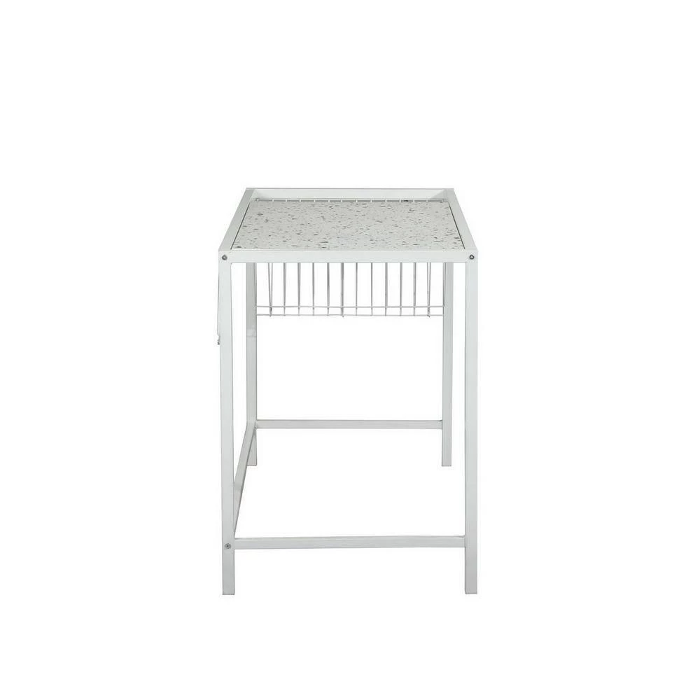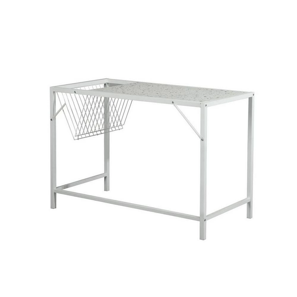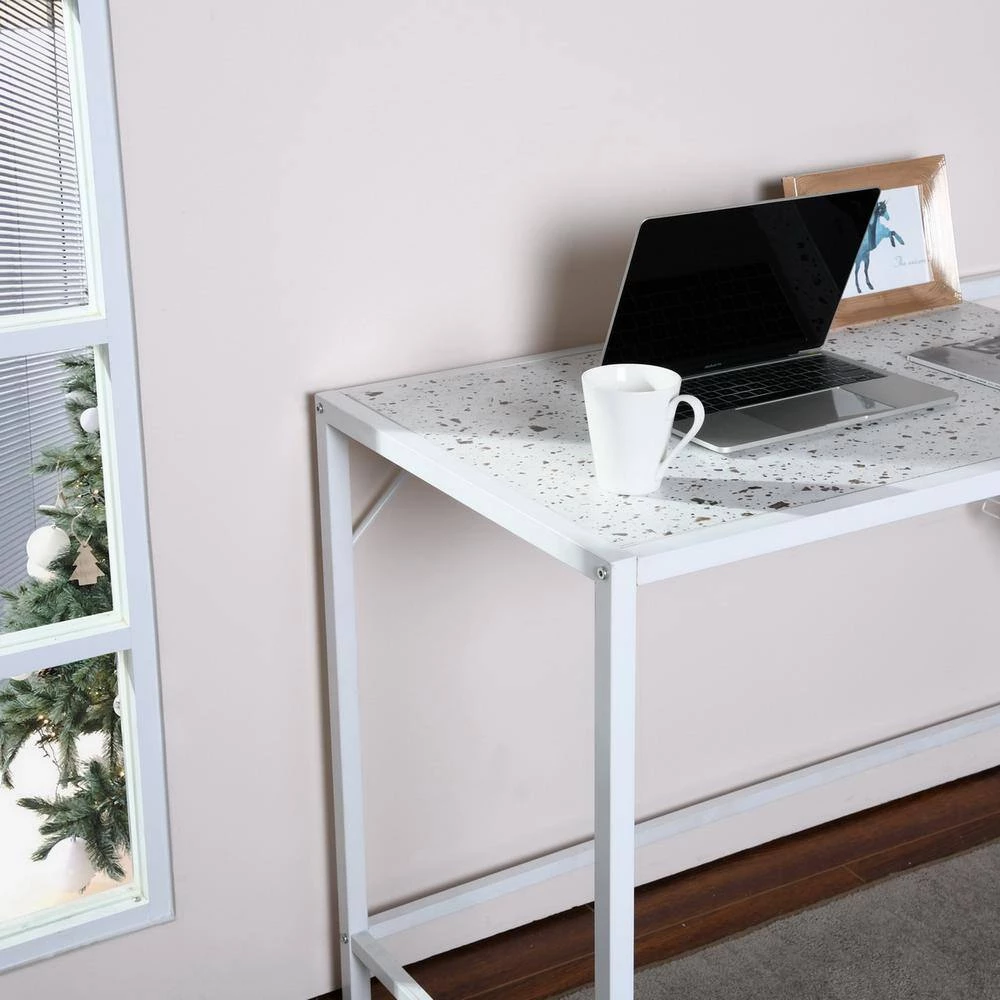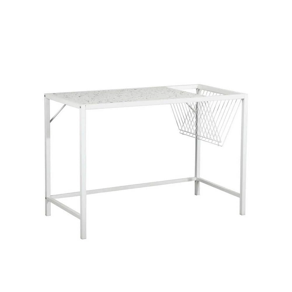 Specially designed for home office and online classes, this simple stylish writing desk will easily match your house decor. One-piece artificial wood is protected by the stainless steel frame to obtain a high-quality stable working area. The storage area and the workbench are closely integrated for easy storage. Its grid design storage area helps you find what you need in the shortest time.