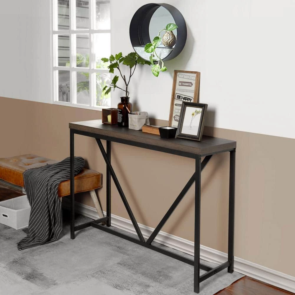 Return the life really, give your home a warm and cozy.This industry style long skinny console table would compliment your furniture and bring multi-functions to your living area without taking up space.Simple and fashionable, multi-scene suitable, can be used as a porch table, sofa table, hallway table, or you can place it against to the wall as a pub table.