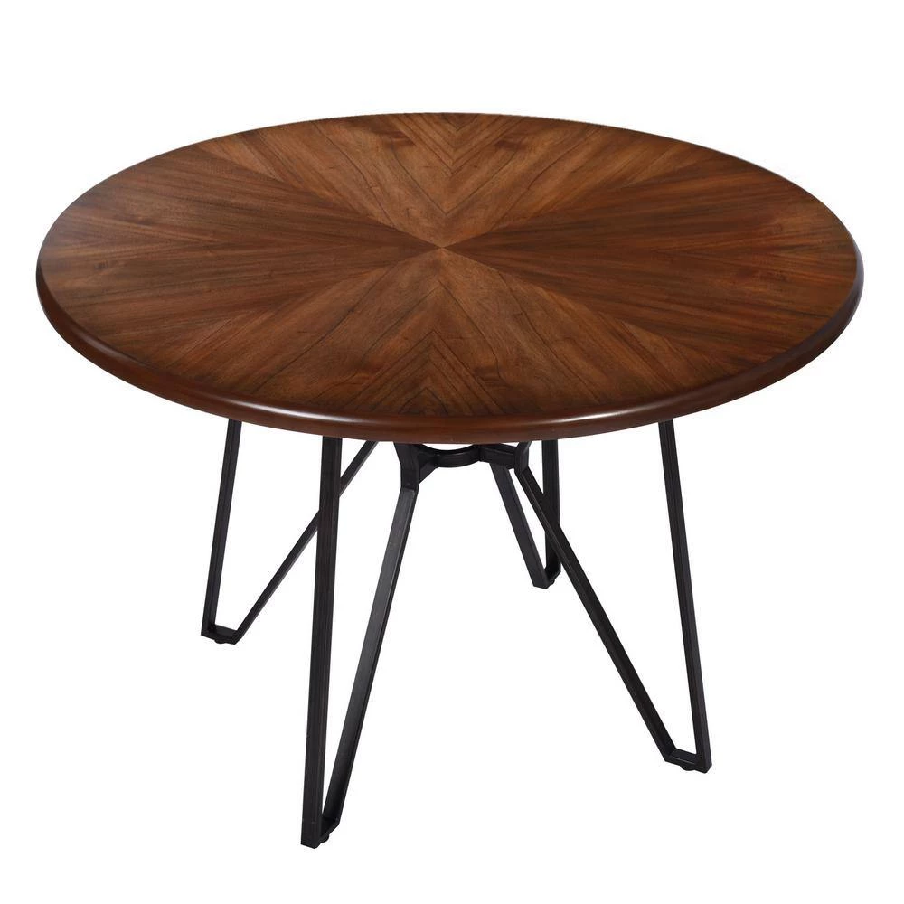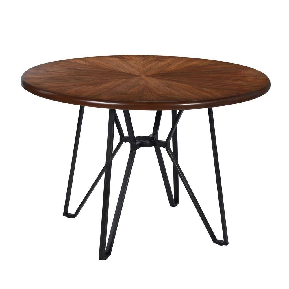 This dining table has a mixed material look that rounds out your eat-in kitchen or breakfast nook with industrial-inspired style. It’s crafted from a mix of iron and engineered wood with a two-toned brown and black finish, and built on an open, x-shaped base. The rounded surface measures 45″ long, making it ideal for seating up to four guests for a fun dinner party or pasta night with your family. It’s also scratch-resistant, so it stands up to dings and scrapes. Plus, this dining table includes all the tools you need for fuss-free assembly.