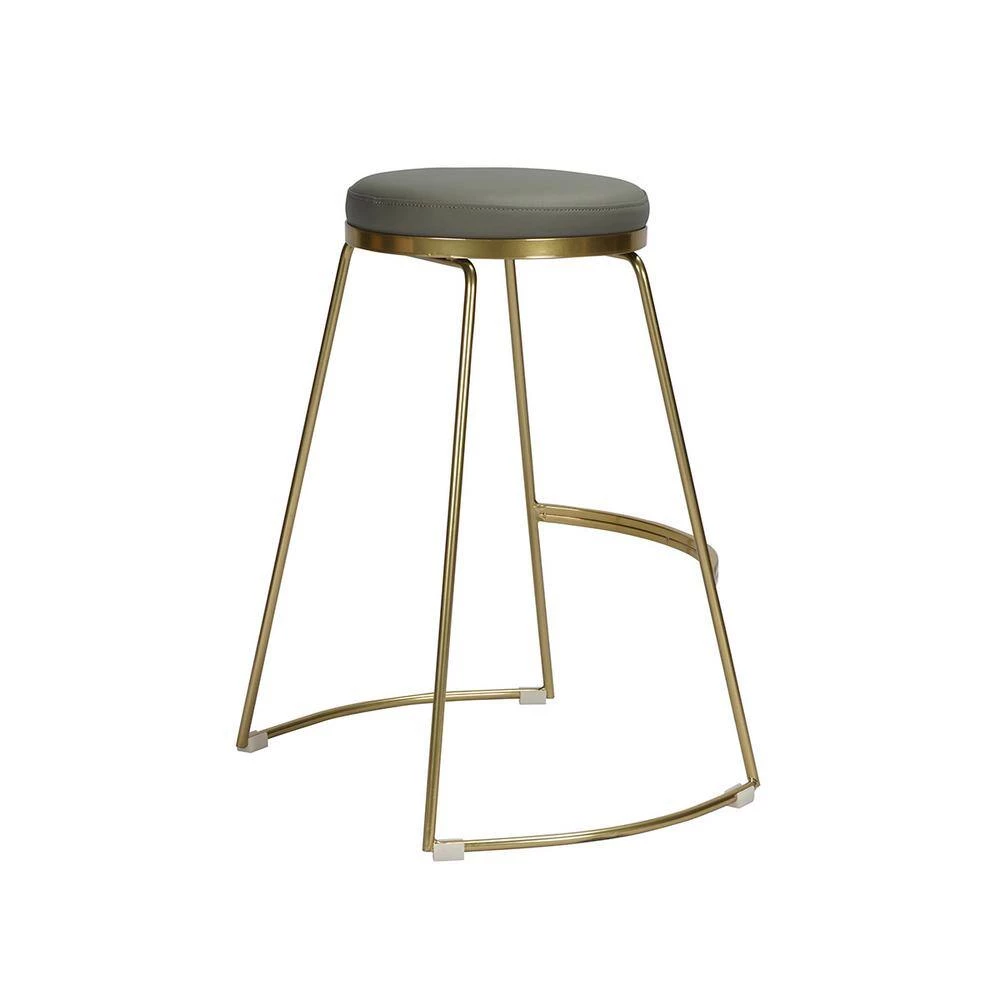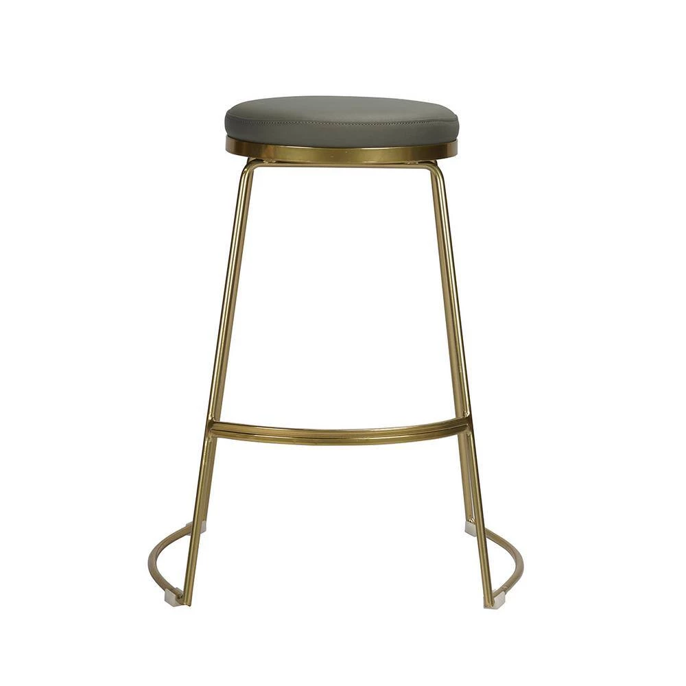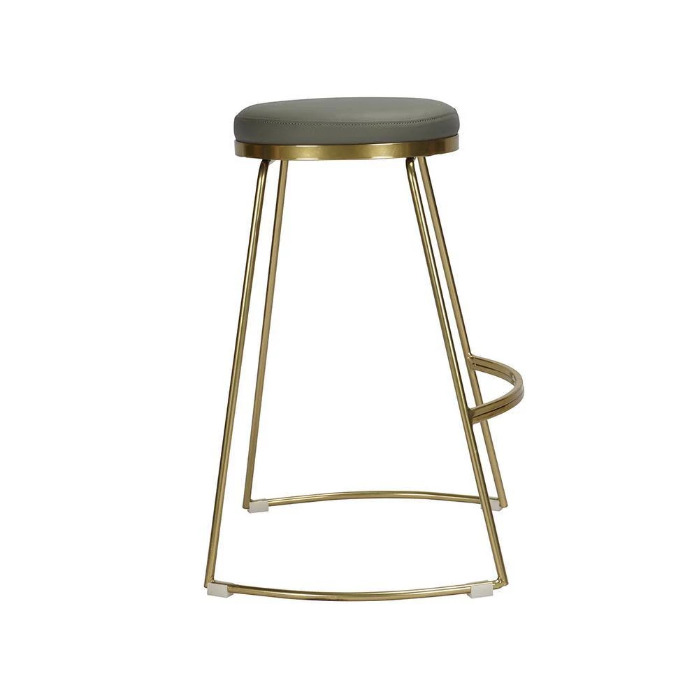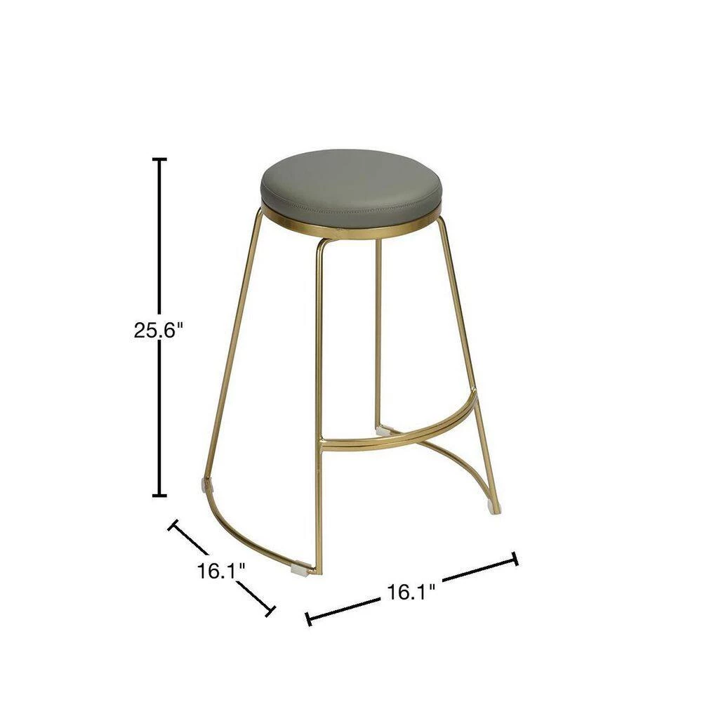 This counter stool gives you a spot around your kitchen island or counter area to enjoy some breakfast or a nightcap in some glam style. It has a round seat upholstered with a gray fabric that complements the gold finished open sled base. This stool is supported by powder coated metal legs that curve for a shapely silhouette that infuses your kitchen with some mid century modern elements. A convenient footrest attaches both legs in the front. Something to keep in mind: Partial assembly is required.