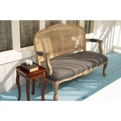SALOME 66.9 in. Brown Wood Blue Fabric 2-Seater Loveseats with Square Arm by Homy Casa