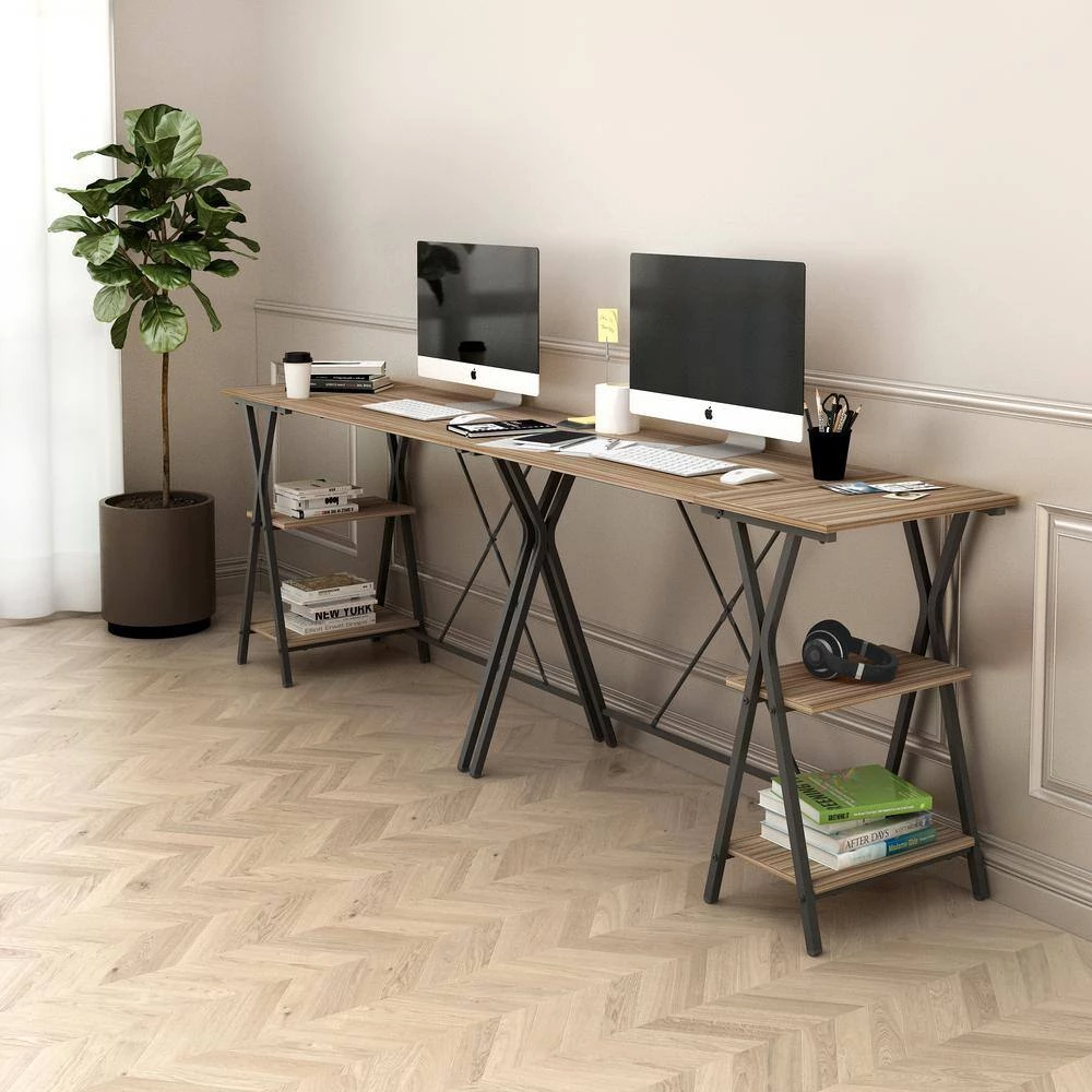 This Modern Computer Desk is a Perfect Furniture For Your Home Or Office And Provides You With A Unmatched Convenience. The Engineered Wood Construction And Powder Coated Steel Frame Provide Years Of Sturdy And Reliable Use. It Features A Large Workstation, Allowing You To Lay Out Your Tasks And Complete Them Efficiently.Two Extra Top Shelf Provides Space For The Printer Or Books. The Bottom Shelf Is Ideal For Placing The Computer Host. Buy Yours Today!