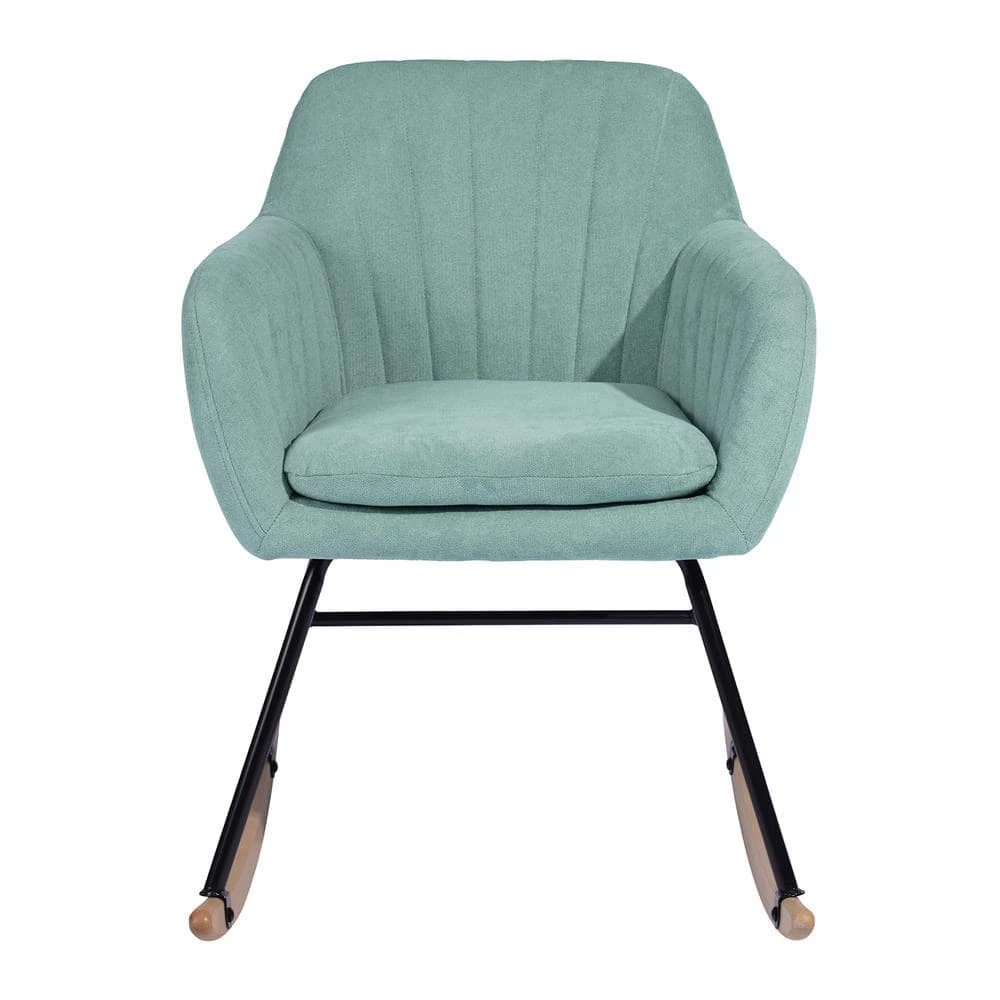 - Mid-century modern styling fabric upholstered rocking chair