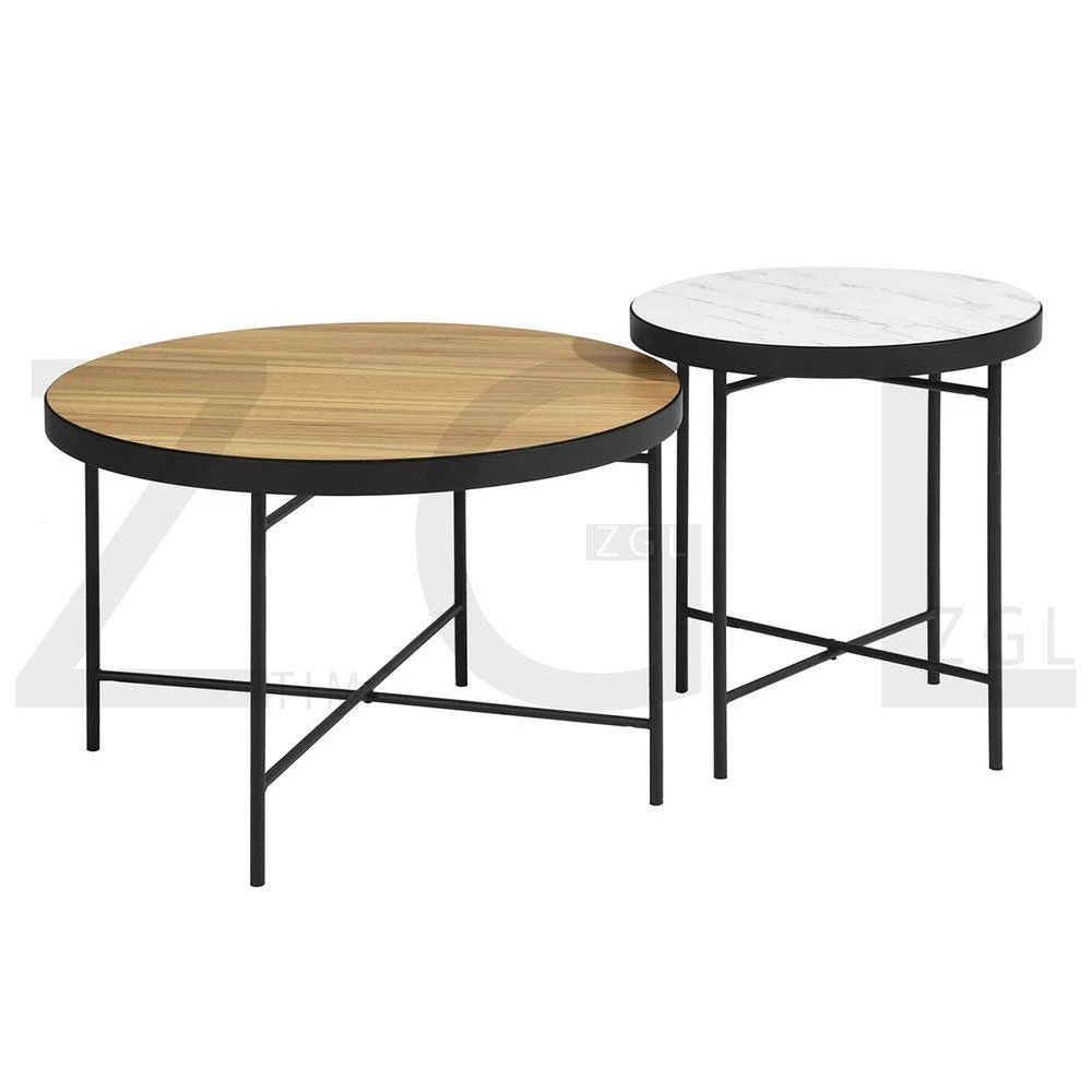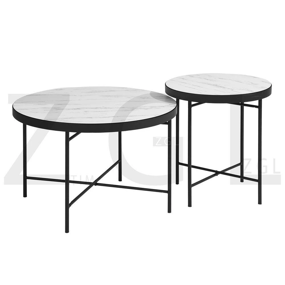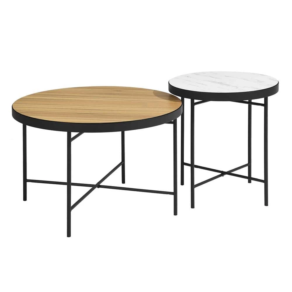 Anchor your living room look with space to stage glossy magazines and potted succulents with this two-piece coffee table set. This set features two pieces, offering the same look in two different sizes. Founded atop an x-shape base with four legs. Each tabletop showcases a manufactured wood insert and a circular silhouette, an elegant contrast.