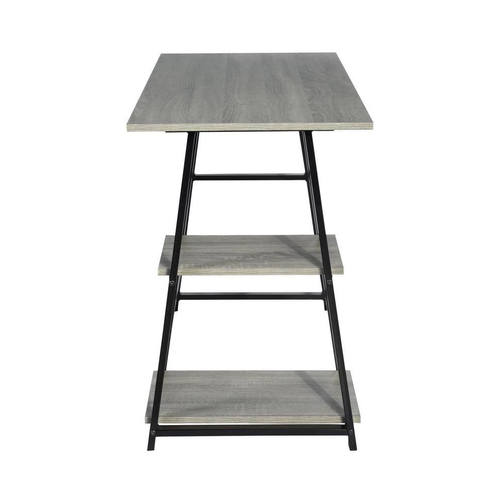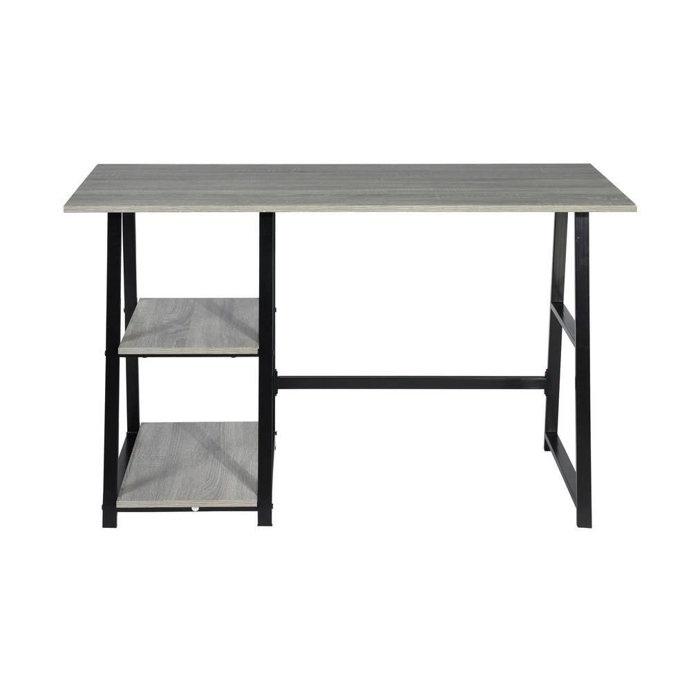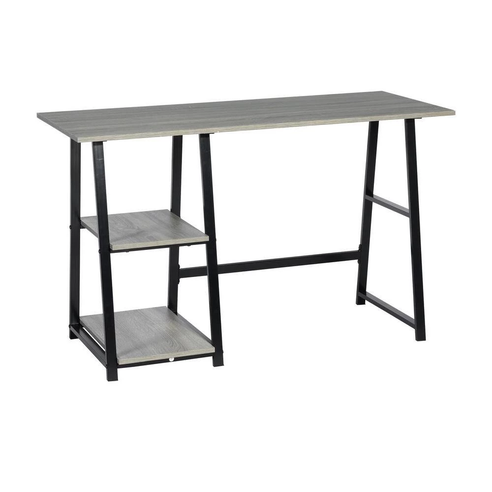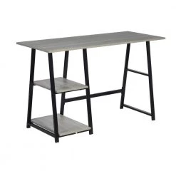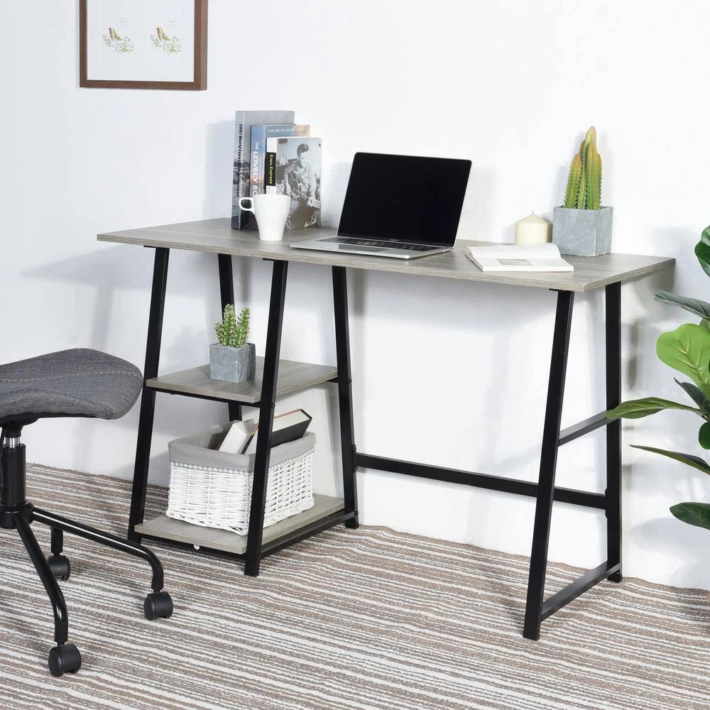 Desk blends practicality and simplicity to create a comfortable space for any computer. With sturdy, A-frame legs to keep things stable and 2-useful shelves to keep accessories and documents. Whether you are looking to write your novel or play a game, this computer desk creates the perfect place to do it.