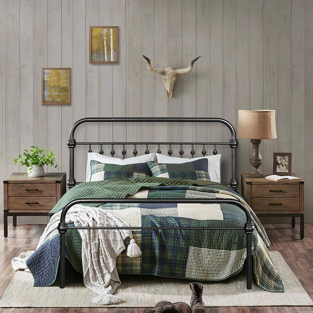 Drift into stylish dreams with the modern lines and sleek accents, this bed will add distinction and uniqueness to your bedroom. Featuring a black classic style metal headboard, frame, and footboard, this platform bed offers strong, durable steel slat support for your spring, memory foam, or Hybrid mattress. A clever twist on a simple style, the metal bed embodies vogueish style in every aspect.