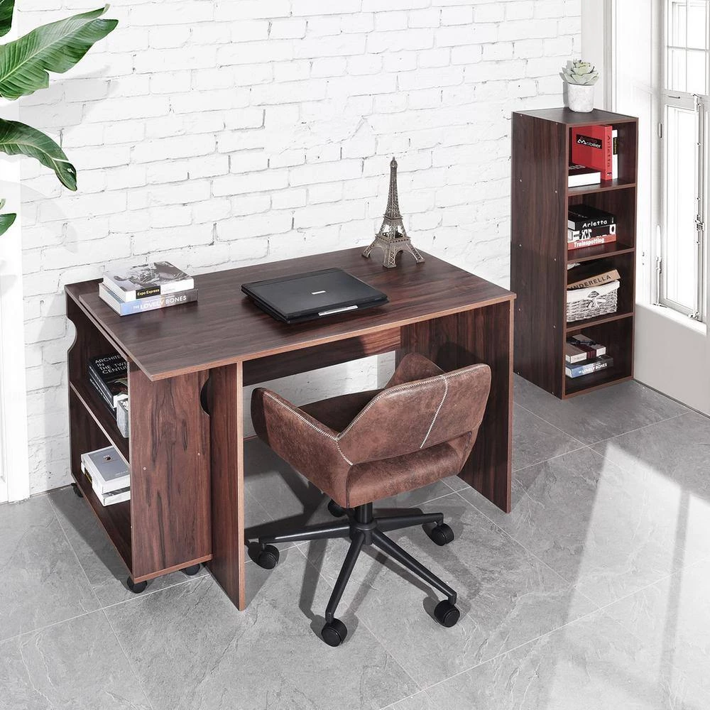 Traditional American style desk fits with any modern or traditional decor.This computer desk made from manufactured wood.This budget-friendly-piece sports a versatile wood grain finish that easily coordinates with your existing color palette. The computer desk features removable open shelves adjust to suit your needs and store office supplies, while a sizable desktop provides essential workspace as you tackle your to-do list.The perfect desk idea for bedrooms, study rooms, and apartments.