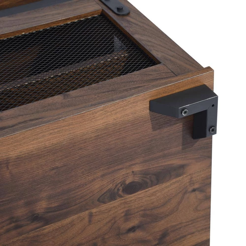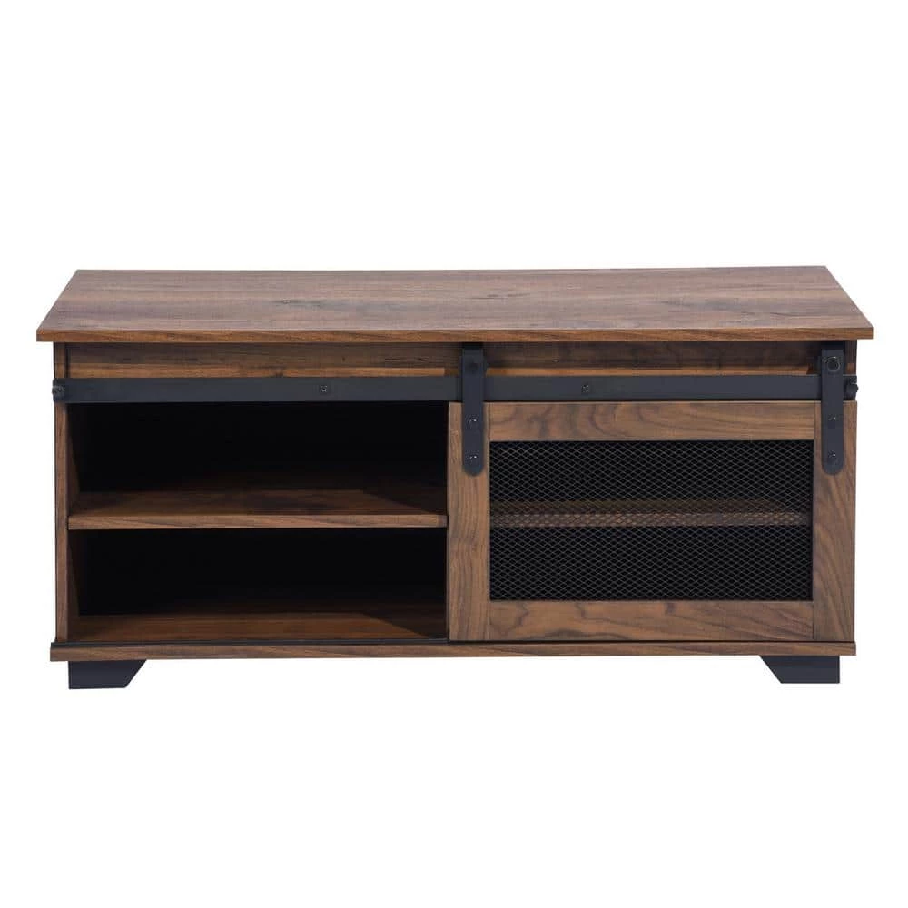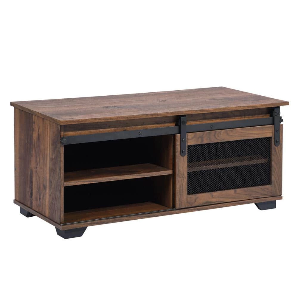 Cool, understated and generous, this industrial coffee table has got form and function covered. With its practical shelf storge and sliding door, this table makes an welcome addition to living space. It combines a black-finished frame with a weathered walnut top.The piece channels cool, chic vibes thanks to its clean-lined silhouette.