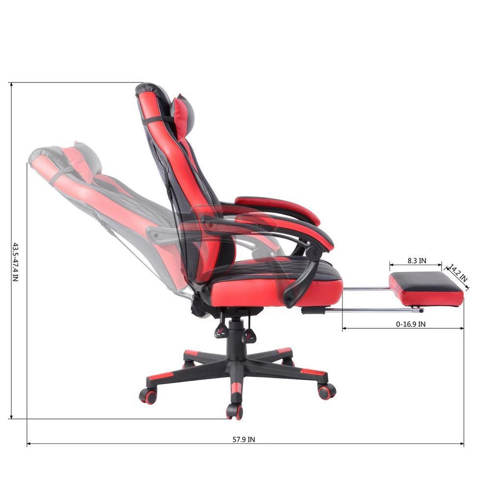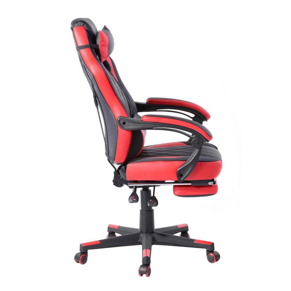 This racing style chair with a bucket seat and high back allows you to have a comfortable and safe experience during busy working days. This gaming chair is made of PU leather which is fade-resistant and easy to clean. Equipped with a removable head-rest pillow, lumbar cushion, and built-in reclining mechanism from 90 to 180 degrees backward.