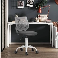 Grey Fabric Seat Office Chair with Swivel Seat and Adjustable Seat Height by Homy Casa