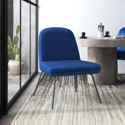 Doumbia Sienna A Black Metal Upholstery Dark Blue Velvet Tufted Accent Chair by Homy Casa