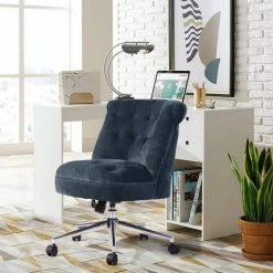 ALExON Orange Velvet Office Chair with Non Adjustable Arms by Homy Casa