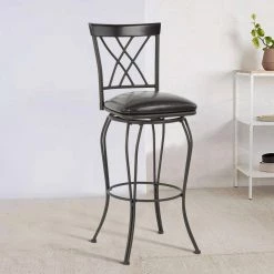 Wichita 43.9 in. Black High Back Metal Bar Stool with Swivel Function (Set of 2) by Homy Casa