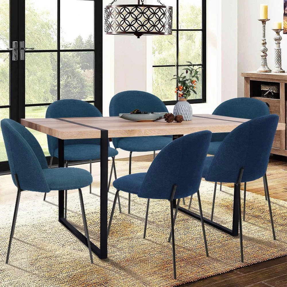 This chair has a modern design with fabric cushion seat and back, the backrest is designed based on ergonomic standard and human body features, comfortable and elegant. Hardware and manual are included, assembly requires fewer screws and time. Dining Chair: fabric seat and iron tube in black powder coating. 2-piece/CTN.