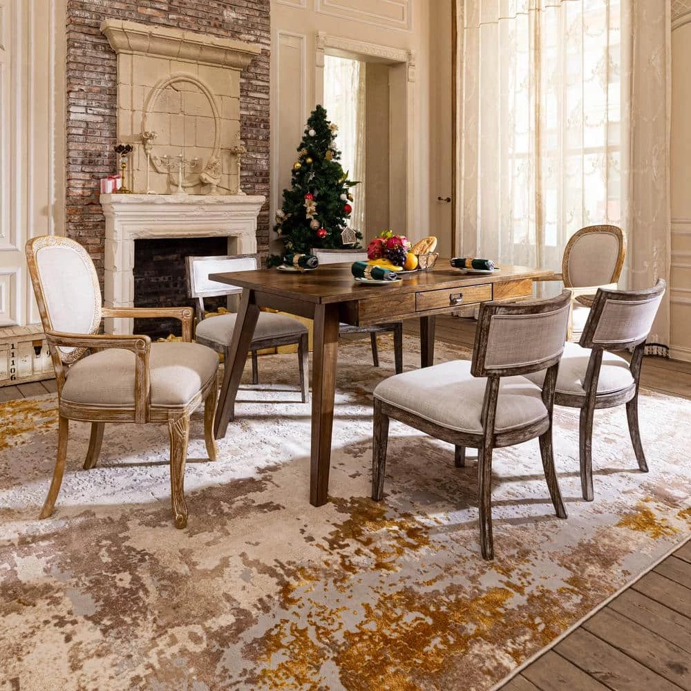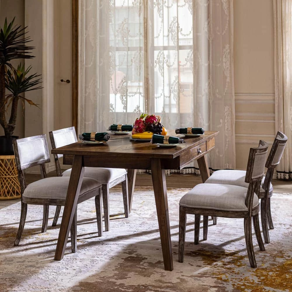 The ultimate compliment to your dining ensemble, your dining chairs lend you the perfect perch to enjoy a meal while they reinforce the style set by your dinner table. Take this chair, for example: perfect for an understated country look, it’s crafted from solid rubberwood with distressed details and a solid-hued finish. A beige upholstered back rounds this piece out with an additional touch of style that makes it perfect for a modern farmhouse.