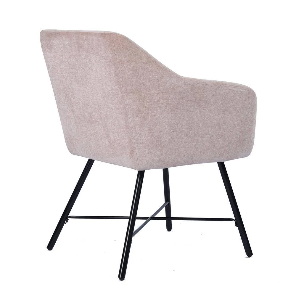 Bringing Mid-century modern style to your living corner,this Dining Chair is ideal for studios, dining kitchens, dining rooms, living rooms, lounge areas, bars, cafes, etc. Its frame is made of metal and fabric.The seat cushion is the just right not too soft that you sink into them or too hard that you want to get up quickly.Leg thickened metal tube, large carrying capacity, strong and durable.The ergonomic backrest and armrest is very suitable for the body and provides a comfortable feeling.