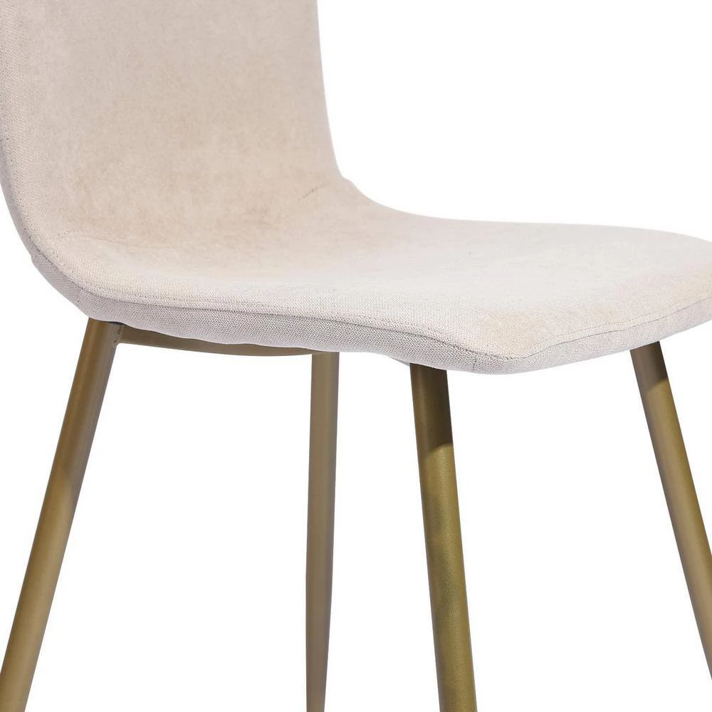 This 4-piece set of side chairs adds a mid-century modern-inspired touch to your dining room or kitchen. Their engineered wood shell seats have streamlined scoop-back silhouettes. The seats are upholstered in foam-filled polyester-blend fabric for a pop of color and just the right amount of padding while you eat. Each dining chair is perched on four tapered steel legs that provide a material contrast and round out its dynamic look. Plus, these chairs come with plastic glides to protect your floors from scuffs and scratches.