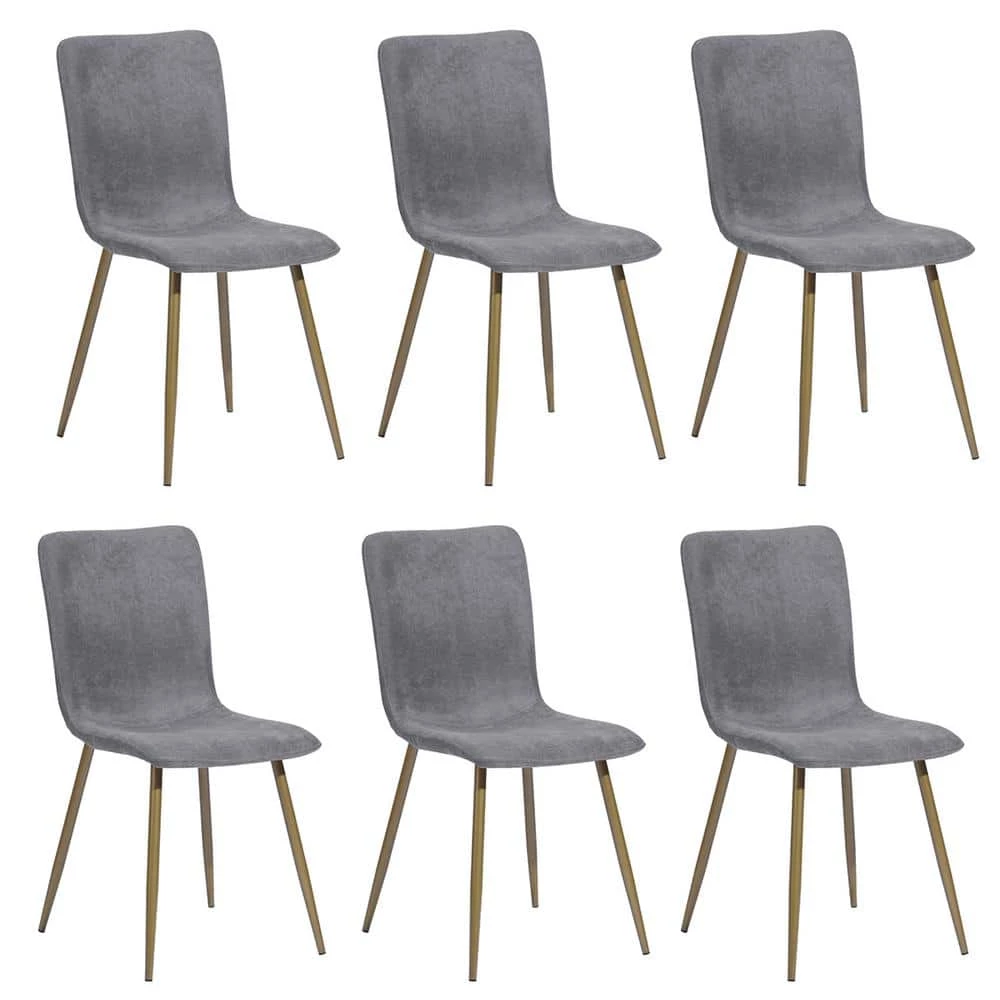 Bring mid century modern style to your dining room or kitchen nook with this upholstered dining chair. It showcases a shell seat and back design with a scoop back shape for a streamlined silhouette. It”s upholstered with a polyester blend fabric or velvet in a chic solid hue, and features a bit of foam underneath for extra padding. Down below, 4 tapered metal legs provide support. Plus, this chair arrives in a set of 6 which could match any size table. aslo it is easy to assemble.